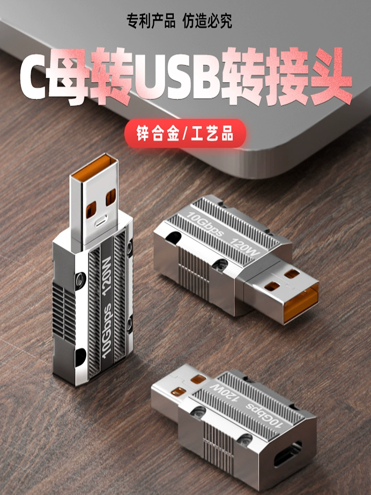 | nameOriginal | USB to Type-C adapter 120W charging 10GBps transmission zinc alloy material mecha style USB C interface |