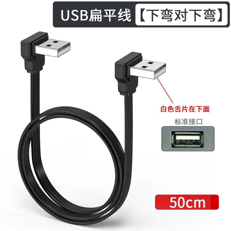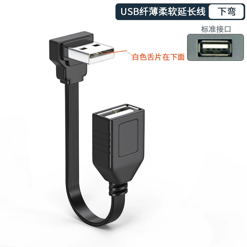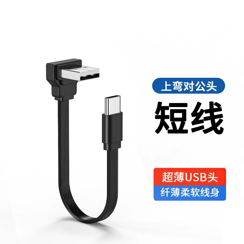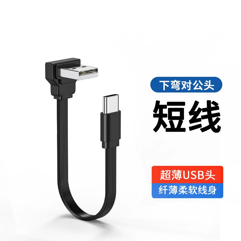 USB to Type-c flat extension cable elbow 90 degree right angle soft silicone USB2.0 elbow charging data cable car car machine projection screen Carplay mobile phone charging cable short U disk TPC