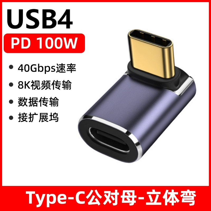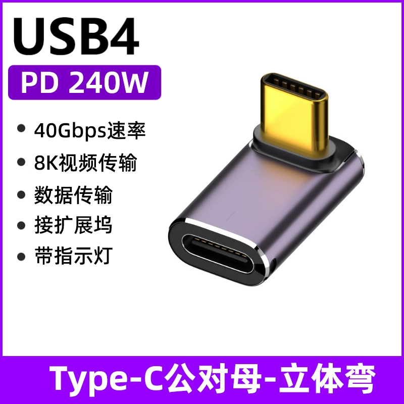 | nameOriginal | USB4 adapter full-featured male-to-female port Typec converter 8k mobile phone tablet 40G Thunderbolt 3/4 charging data cable extended 90-degree right-angle U-shaped elbow PD240W flash charge |