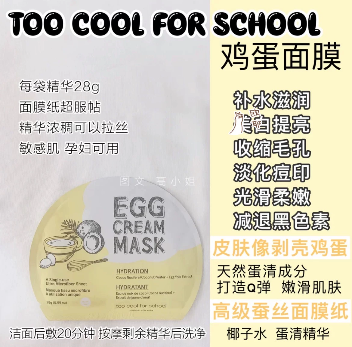 | nameOriginal | Use it to get tender and smooth egg-like skin! Korean too cool for school egg mask with cool egg nourishing |