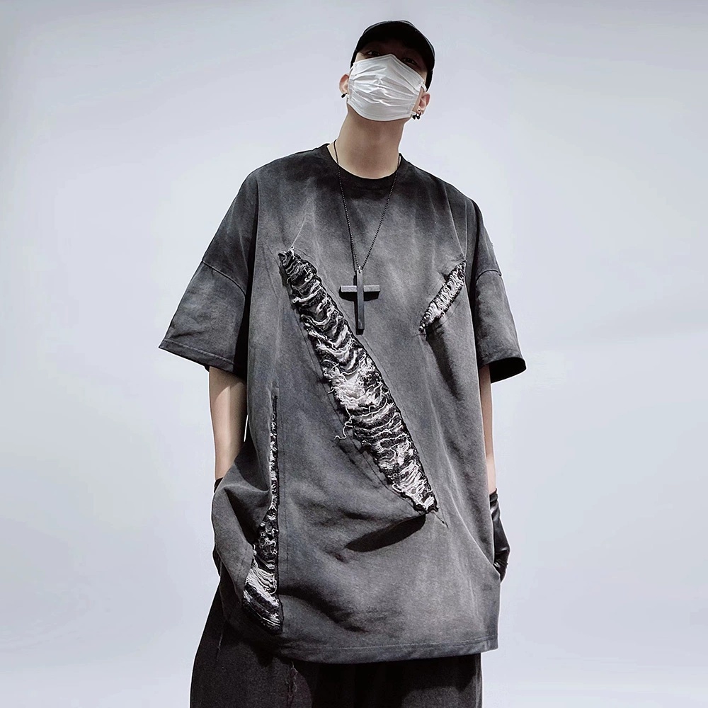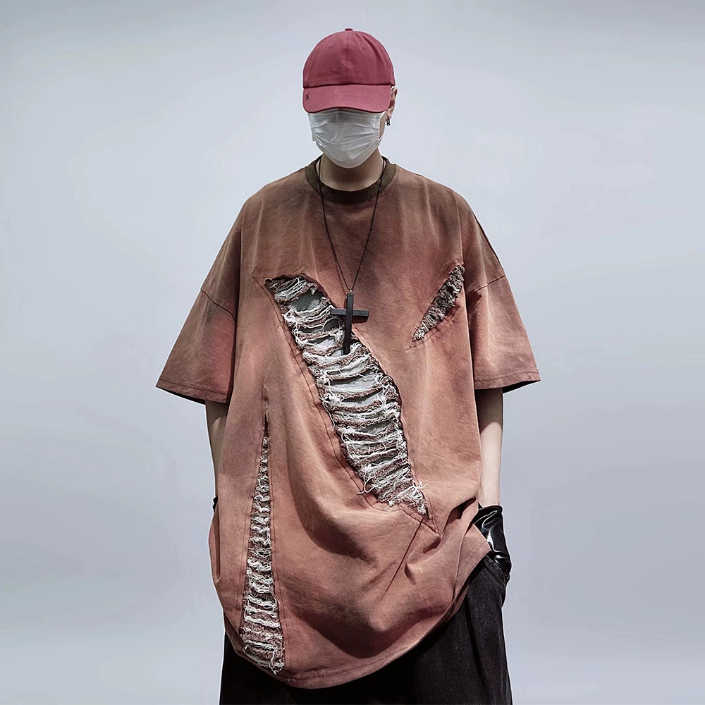 UUCSCC hip-hop high street retro ripped short-sleeved T-shirt