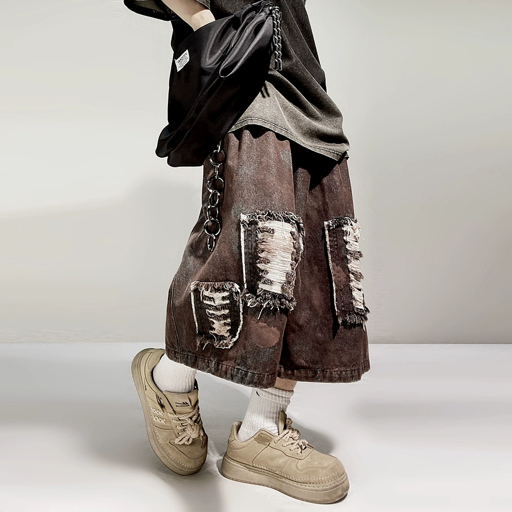 UUCSCC hip hop ripped vtg denim five-point pants
