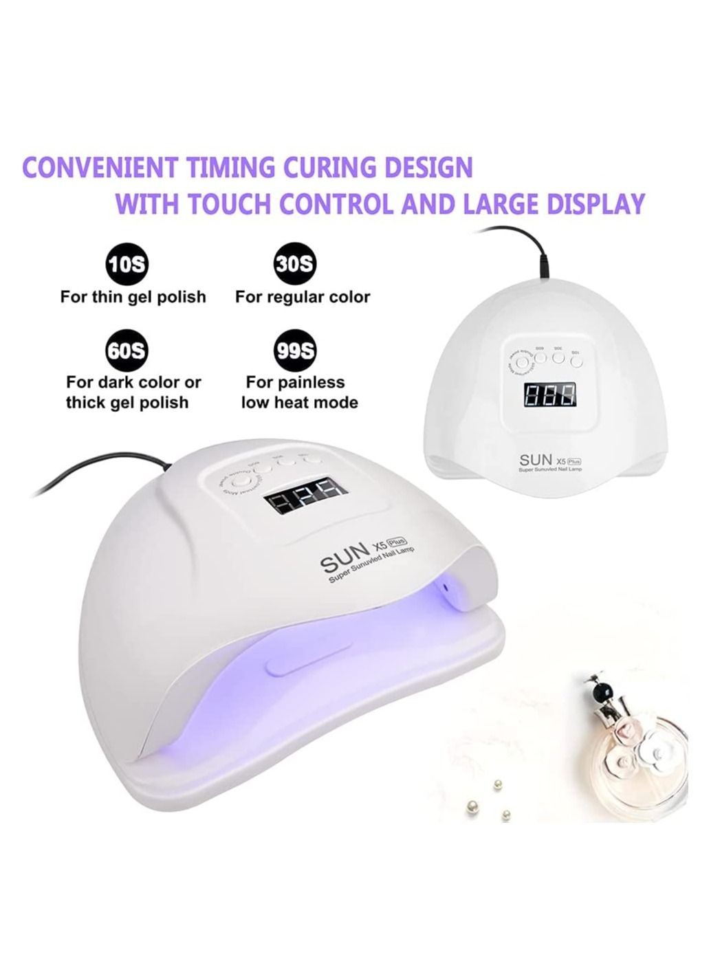 The Sun X5 Plus Auto Sensing LCD Display UV 36 LED Nail Dryer Lamp is the perfect solution for curing gel polish quickly and efficiently. With its powerful 120W/150W/180W output, this nail dryer lamp can cure gel polish in just a few seconds, leaving your nails looking flawless and perfectly polished.