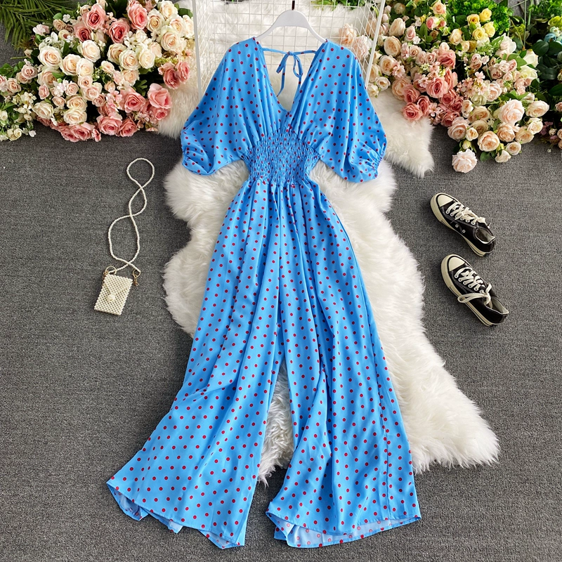 | nameOriginal | V-neck batman sleeves waisted polka dot print jumpsuit |