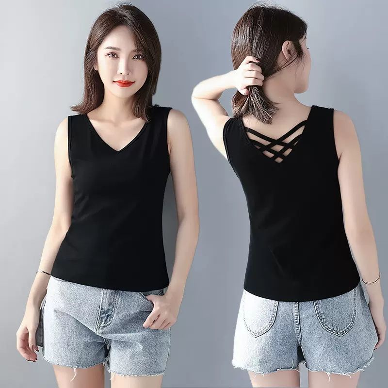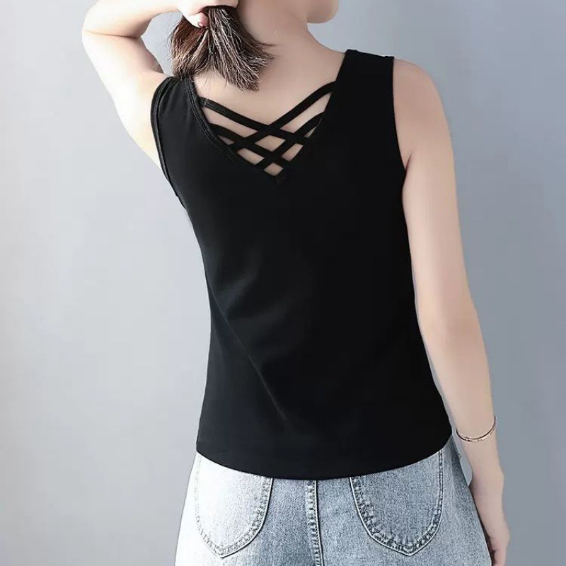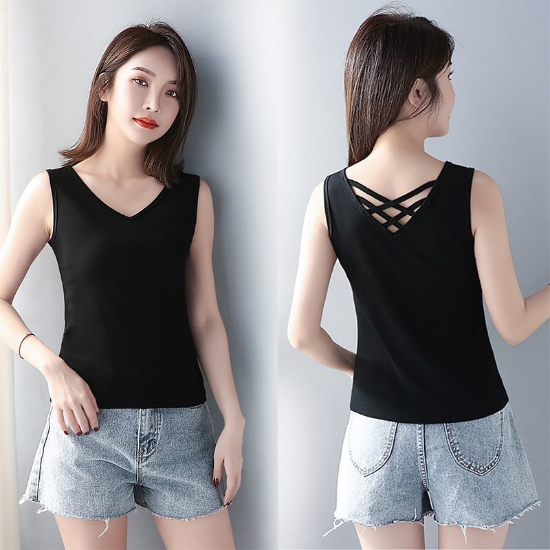 | nameOriginal | V-Neck Beautiful Back Sling Black Internet Celebrant Popular Vest Women's Design Sense Outer Wear Inner Sleeveless T-shirt Base Spring, Summer and Autumn |