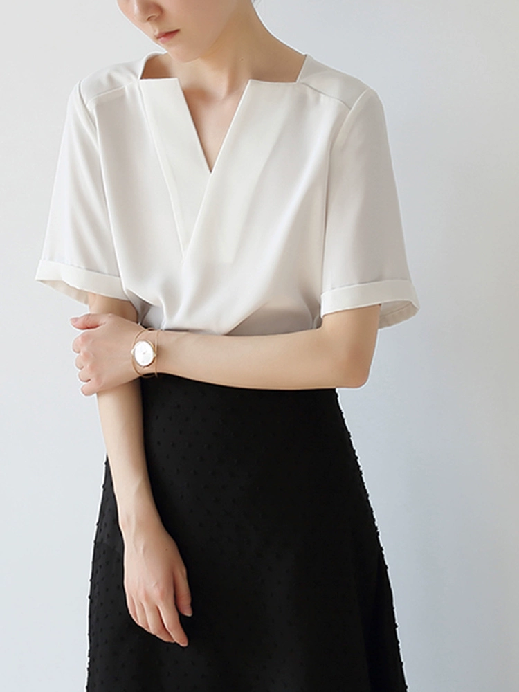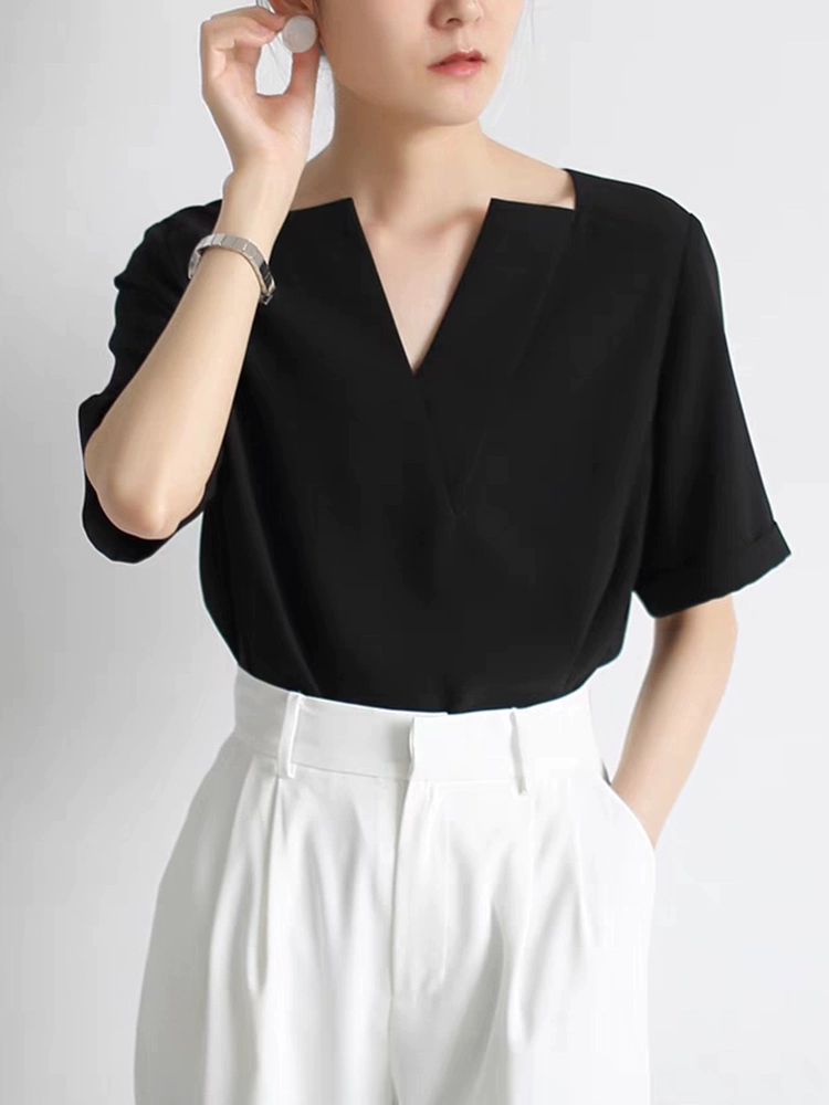 | nameOriginal | V-neck black loose professional interview formal shirt |