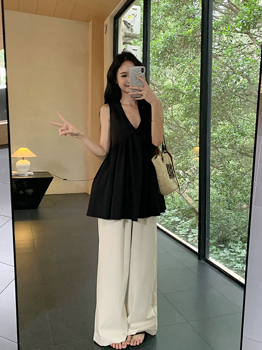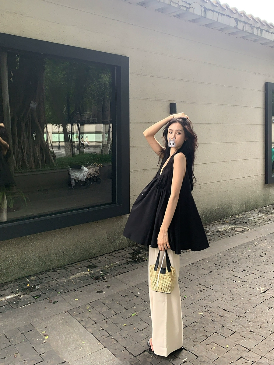 | nameOriginal | V-neck black sleeveless simple loose babydoll vest |