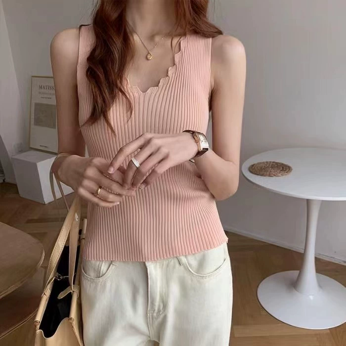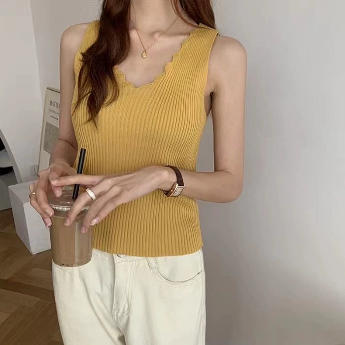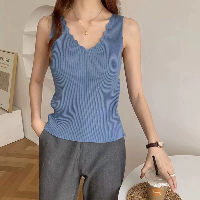 V-neck camisole worn outside with sleeveless lace inside