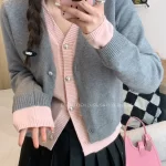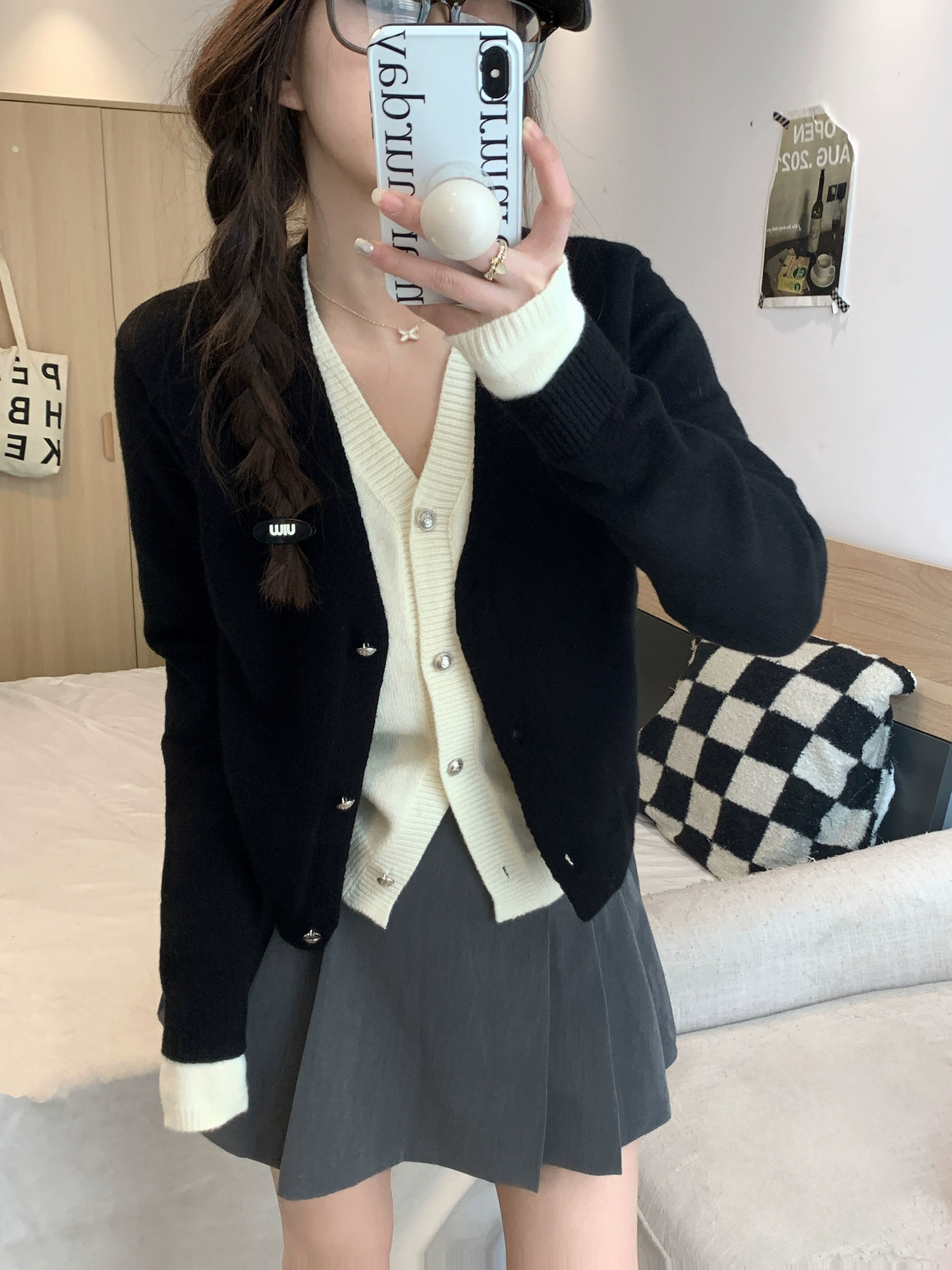| nameOriginal | V-neck cardigan soft and waxy skin-friendly sweater jacket fake two pieces |