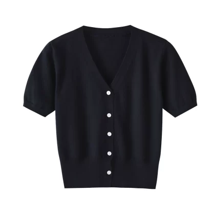 | nameOriginal | V-neck cardigan with waisted knitted short-sleeve skirt |