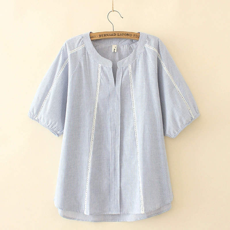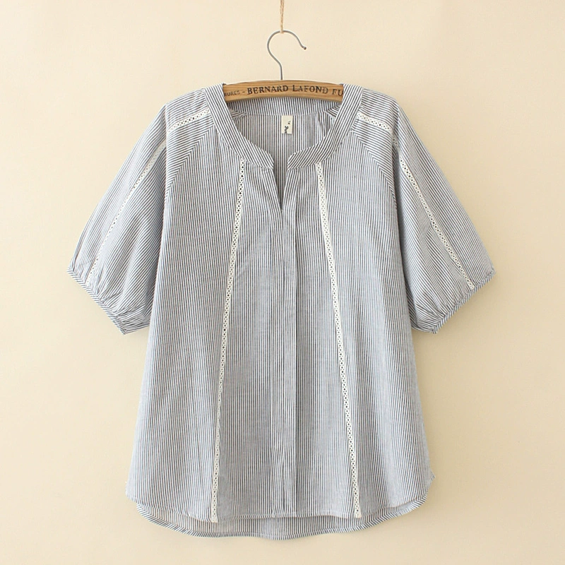 | nameOriginal | V-neck casual hollow patchwork striped shirt pullover |
