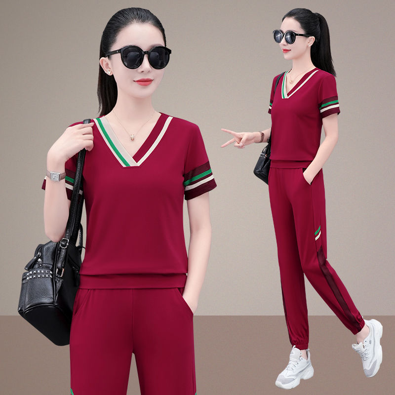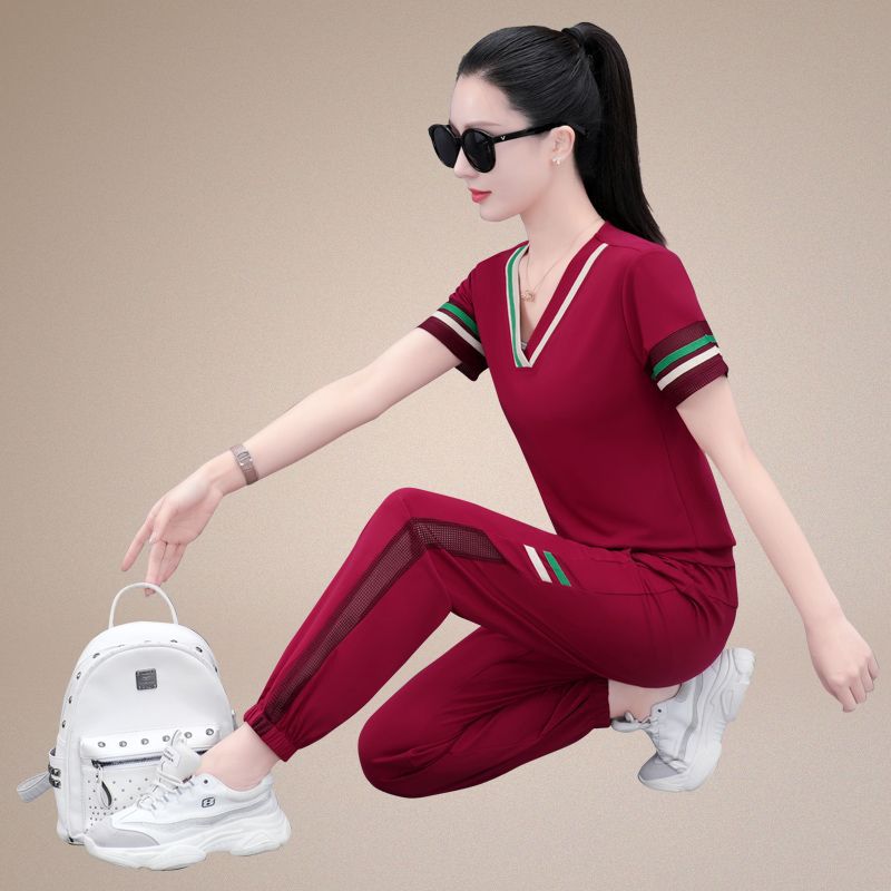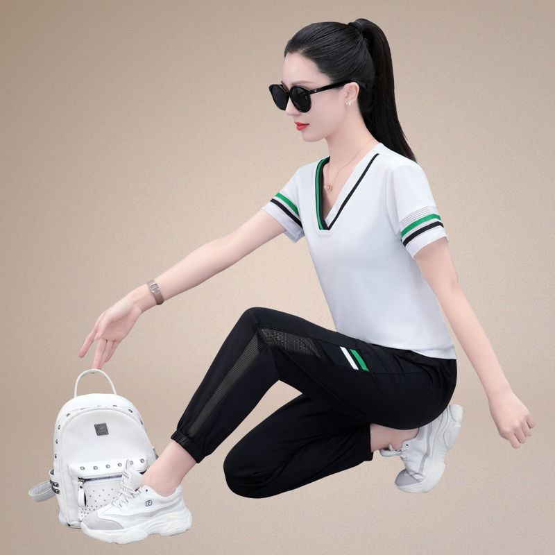 | nameOriginal | V-neck casual sportswear suit women's summer 2023 new fashion Western style slimming loose age-reducing two-piece suit fashion |