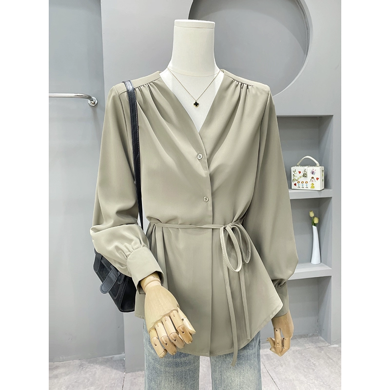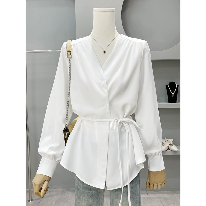 | nameOriginal | V-neck chic and beautiful long-sleeved top white shirt |
