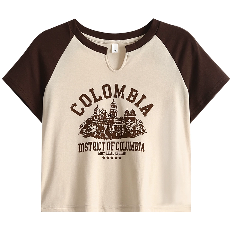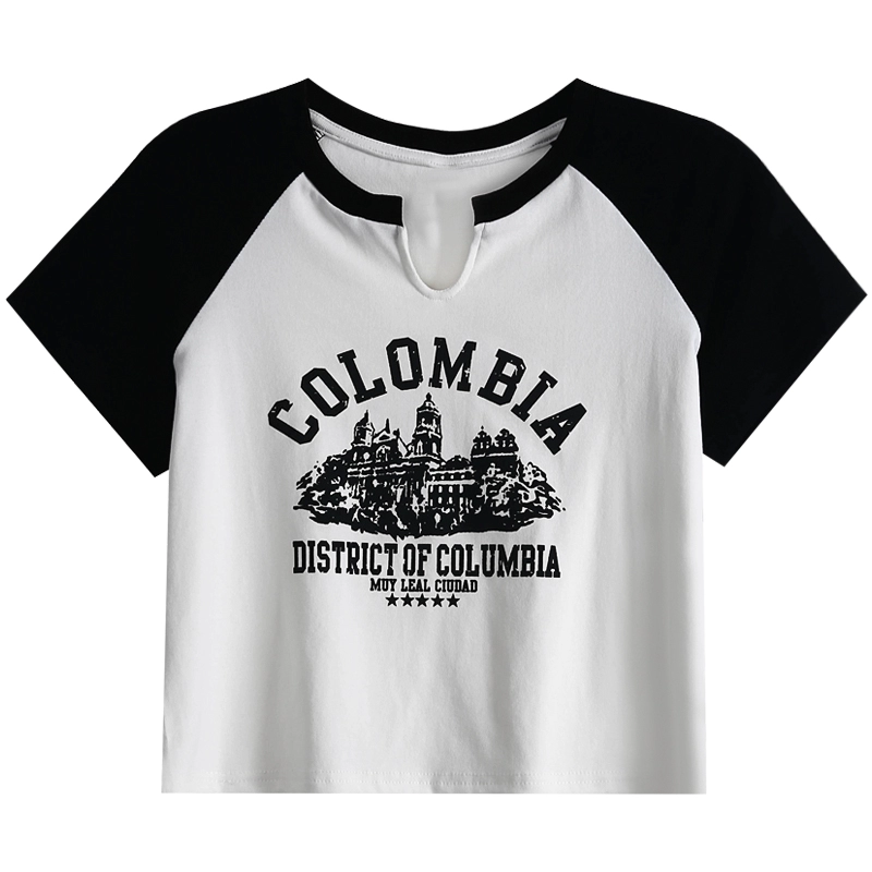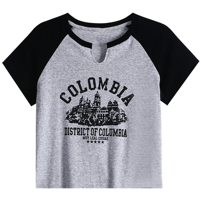 | nameOriginal | V-neck contrast color women's summer slim-fit printed short-sleeved T-shirt |