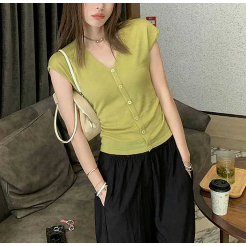 | nameOriginal | V-neck contrast sweater women retro college style casual sleeveless top 2024 summer new women's T-shirt wholesale |