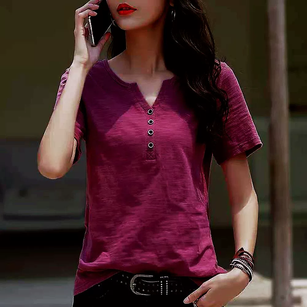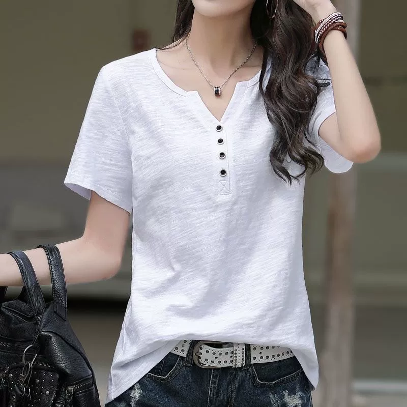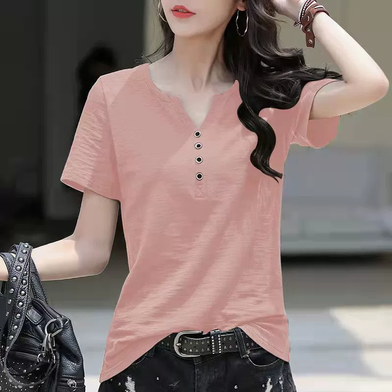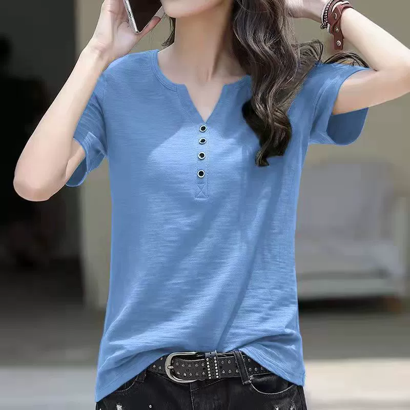 | nameOriginal | V-neck cotton button women's summer loose large size short-sleeved T-shirt |