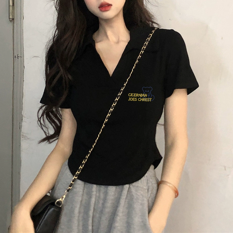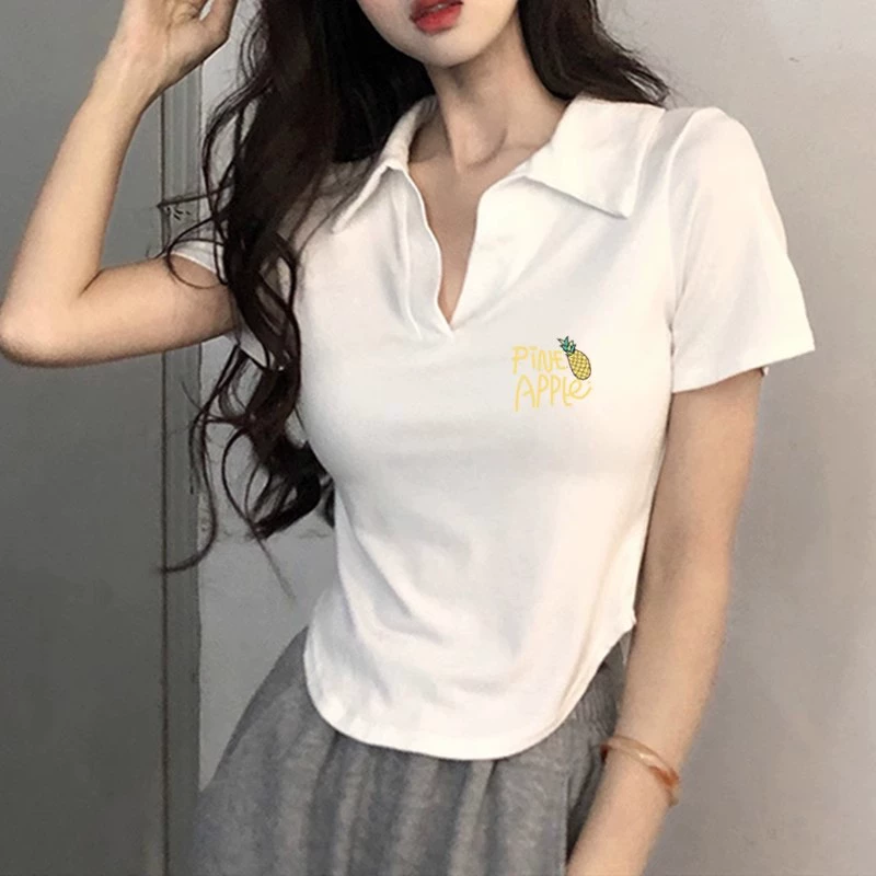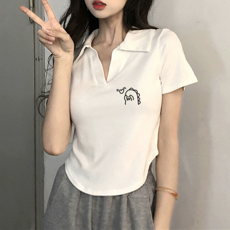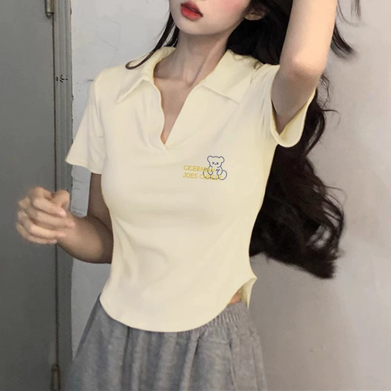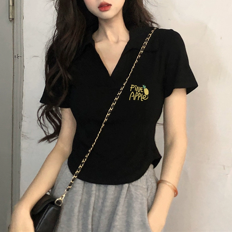 | nameOriginal | V-neck design polo shirt hot girl short top t-shirt |
