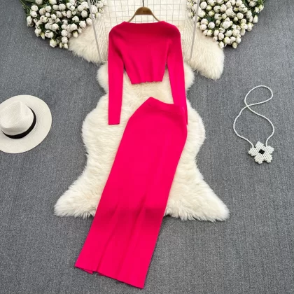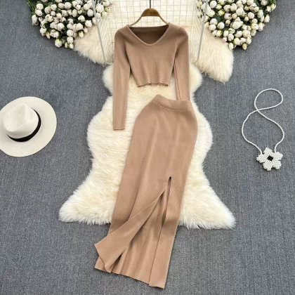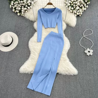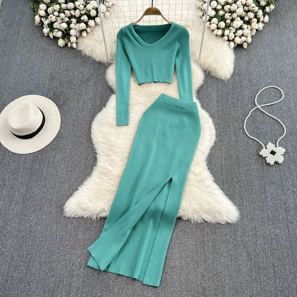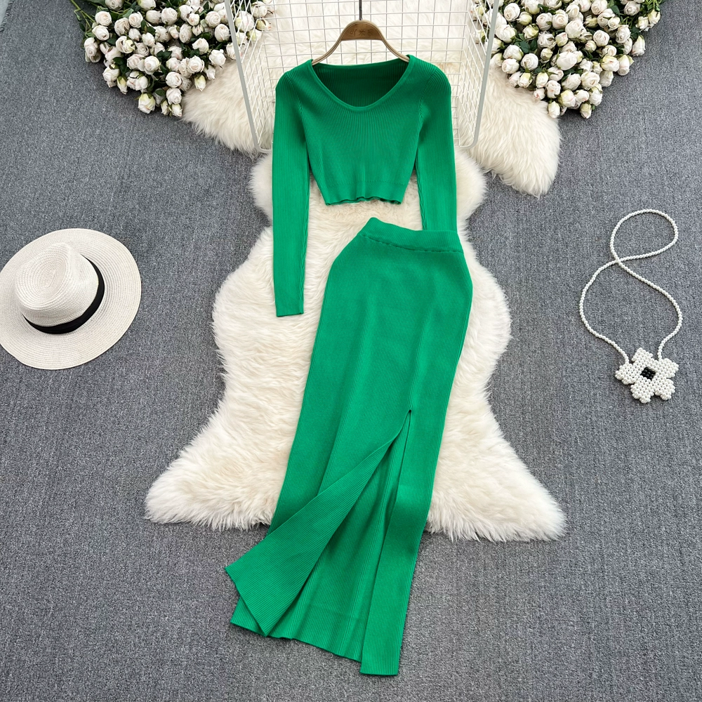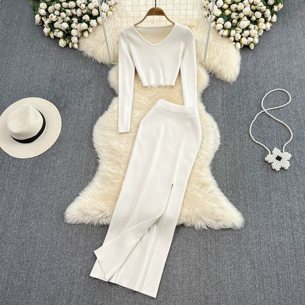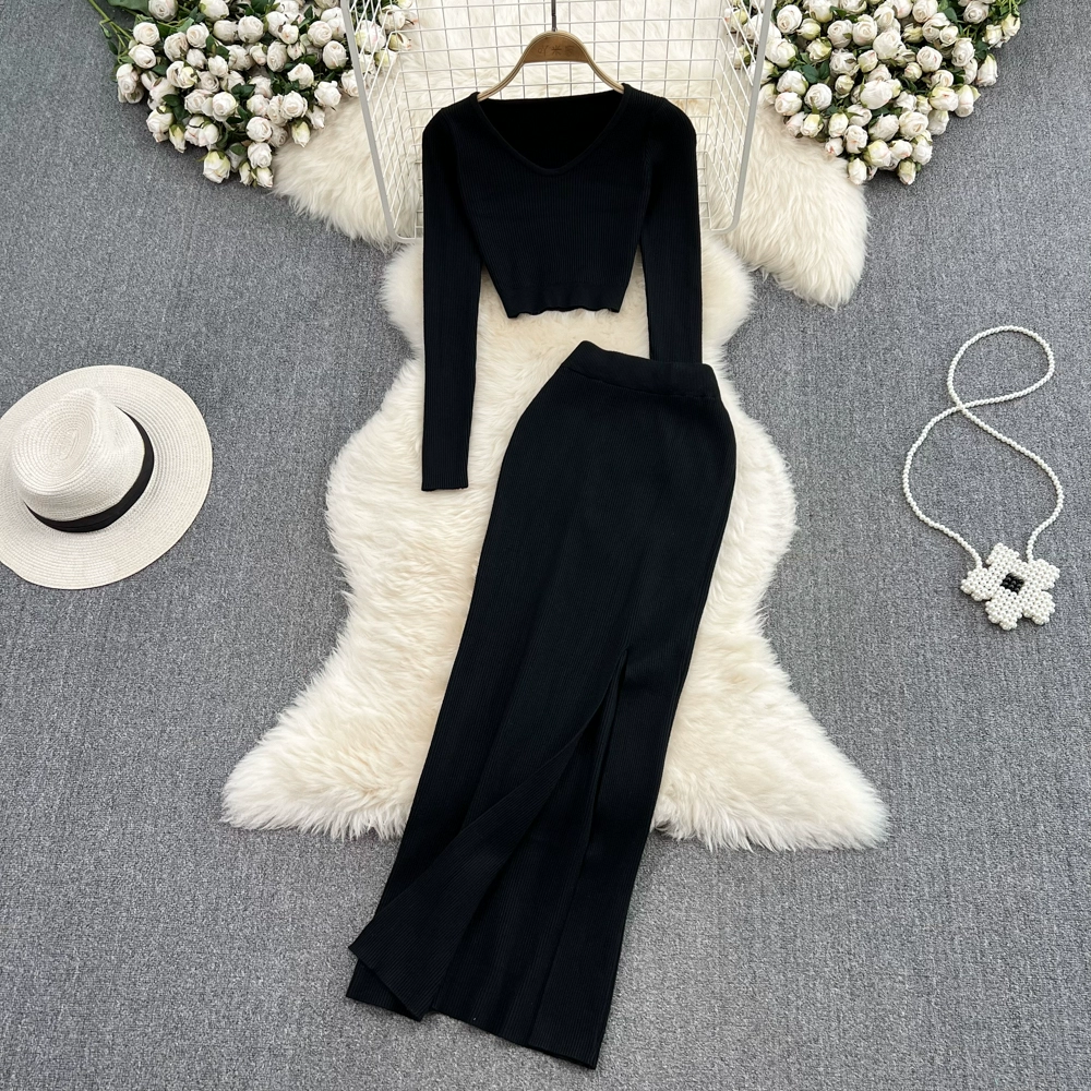 V-neck elastic tight-fitting slit hip-hugging fashion suit