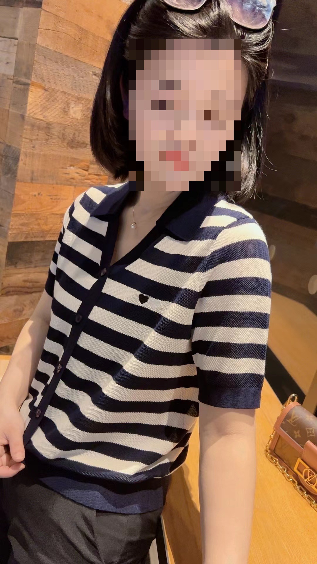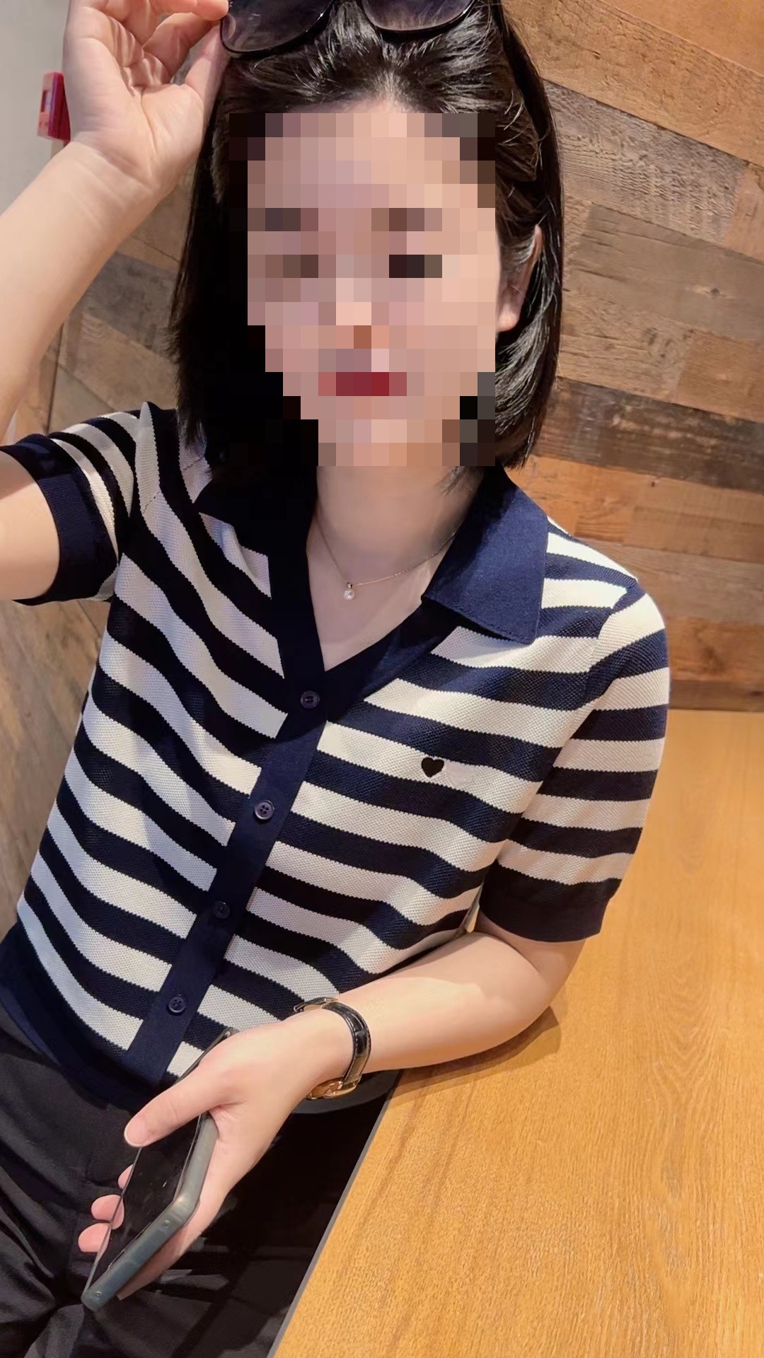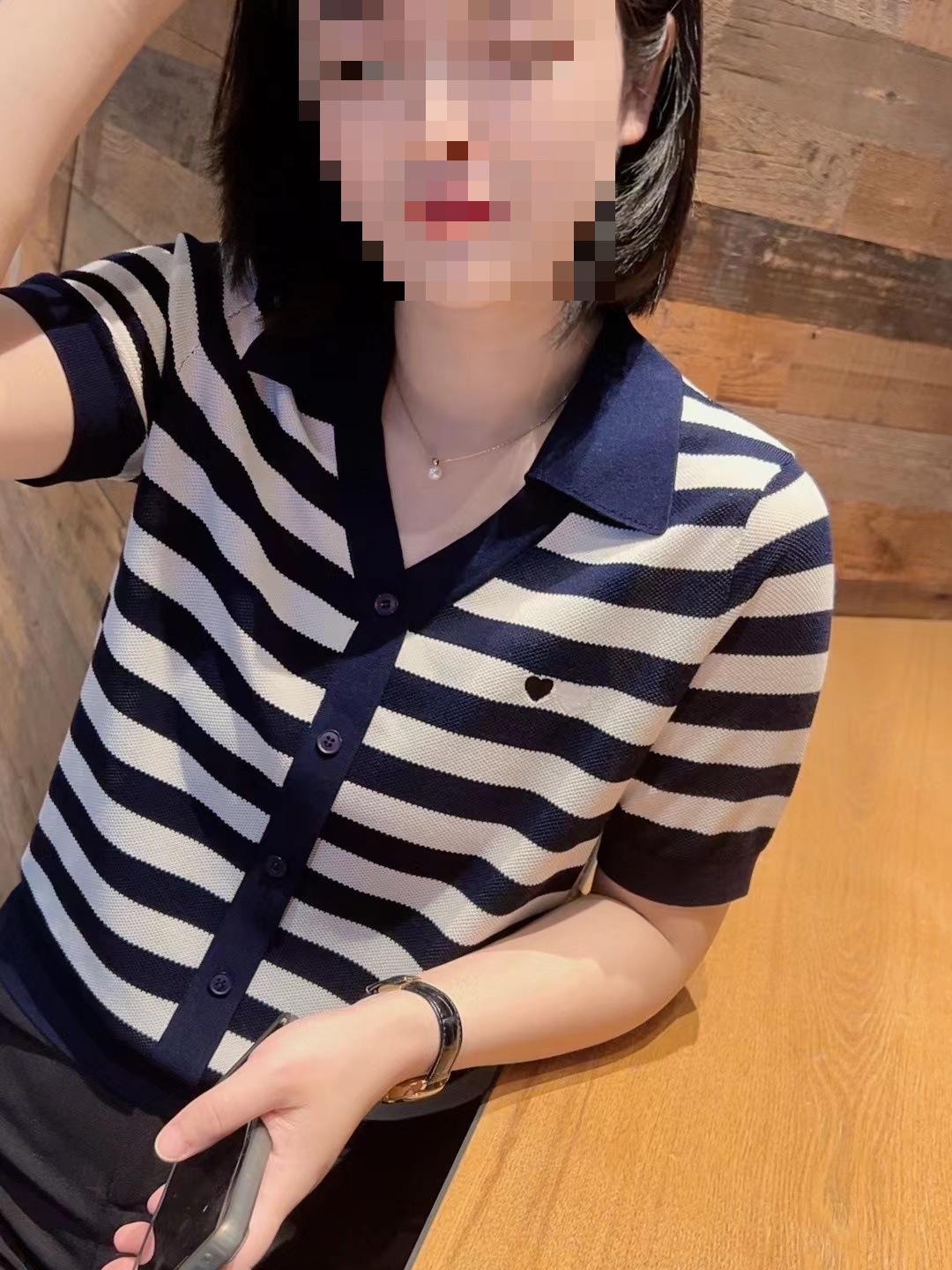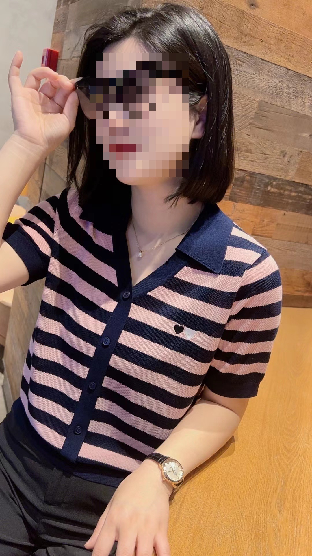 | nameOriginal | V-neck Fashion Love Polo Shirt Slim-fit Slimming Design Sense Short T-shirt Thin Stripe All-match Color Contrast Knit |