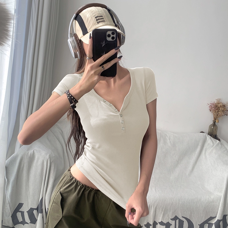 | nameOriginal | V-neck fitness girls hot selling collarbone slimming short sleeves |