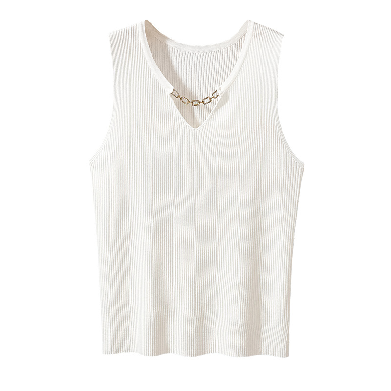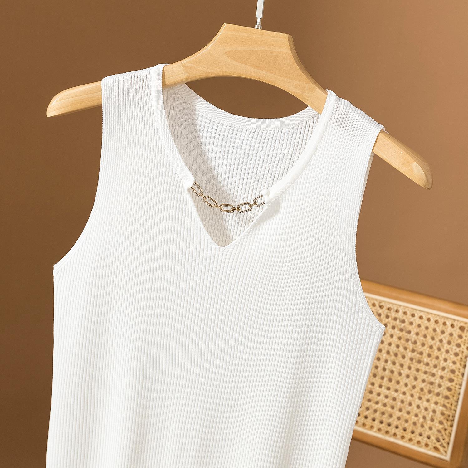V-Neck Knitted Camisole Women’s 2024 Summer New Large Size Chubby Sister Slim-fit Base Inner Short Top