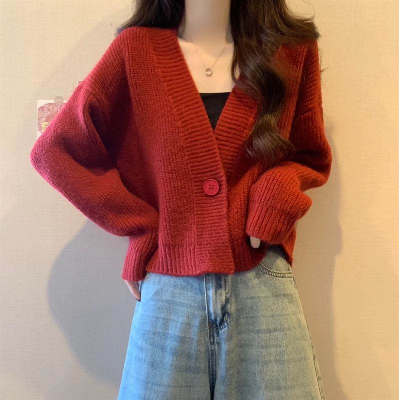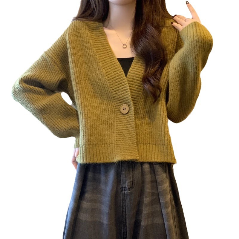 | nameOriginal | V-Neck Knitted Cardigan Coat Women's Spring and Autumn Lazy Style Loose Soft Waxy Outer Wear Stylist All-Match Short Sweater Top |
