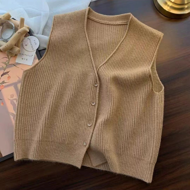 | nameOriginal | V-neck knitted vest stacked 2024 spring outdoor college style breasted sweater vest women's soft glutinous slimming top |