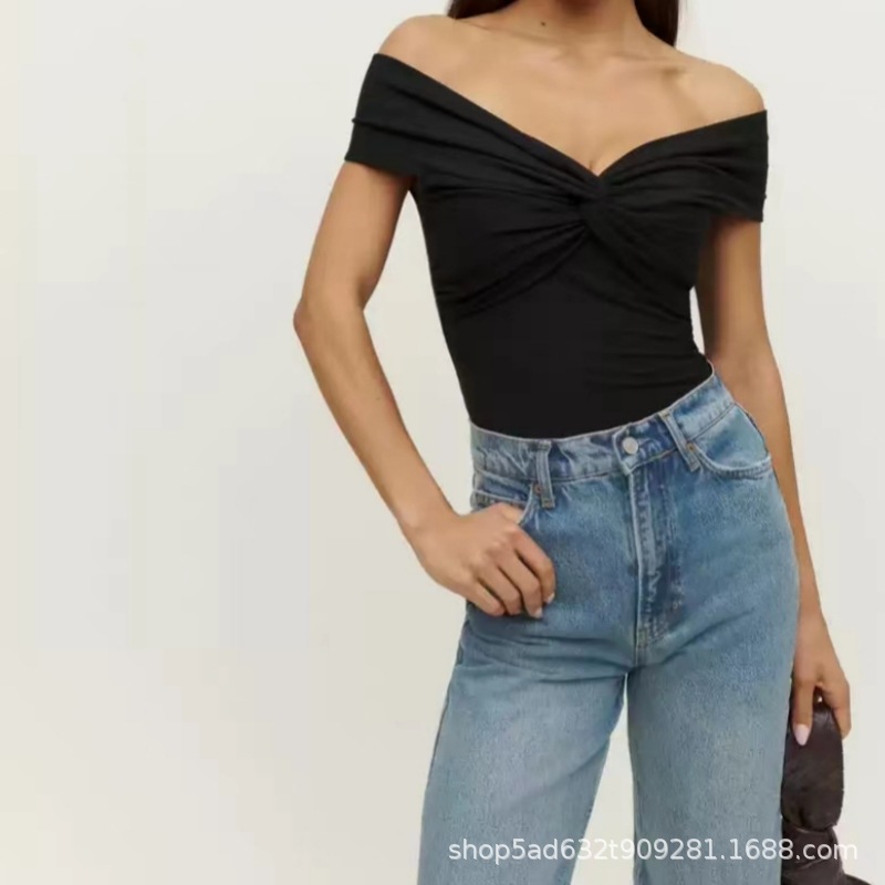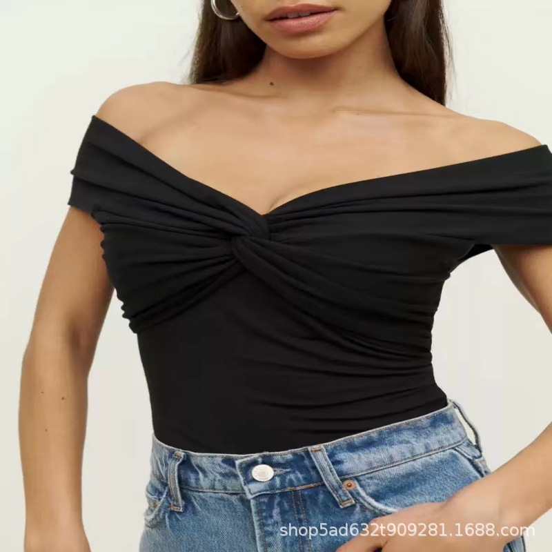 | nameOriginal | V-neck knot design cross off-shoulder pleated sexy all-match style knitted top 2024 spring and summer hot girl shirt ins |