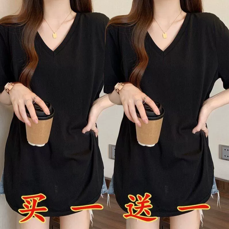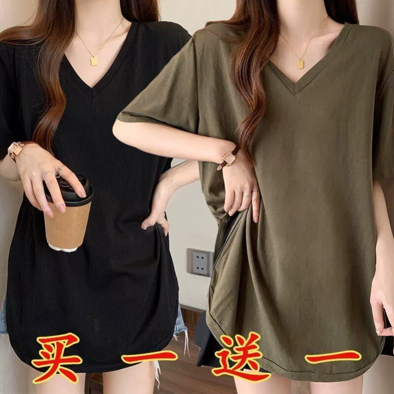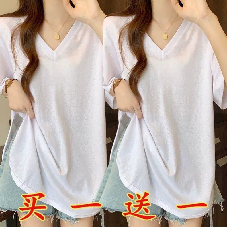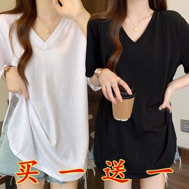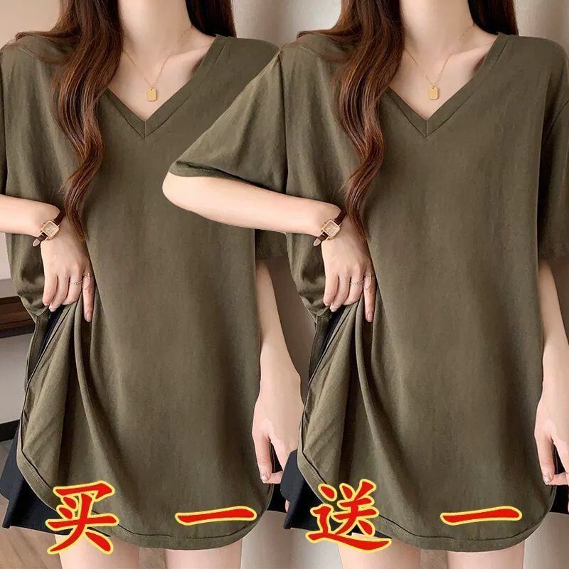 | nameOriginal | V-neck large size right shoulder fat mm slit loose flesh-covering T-shirt |