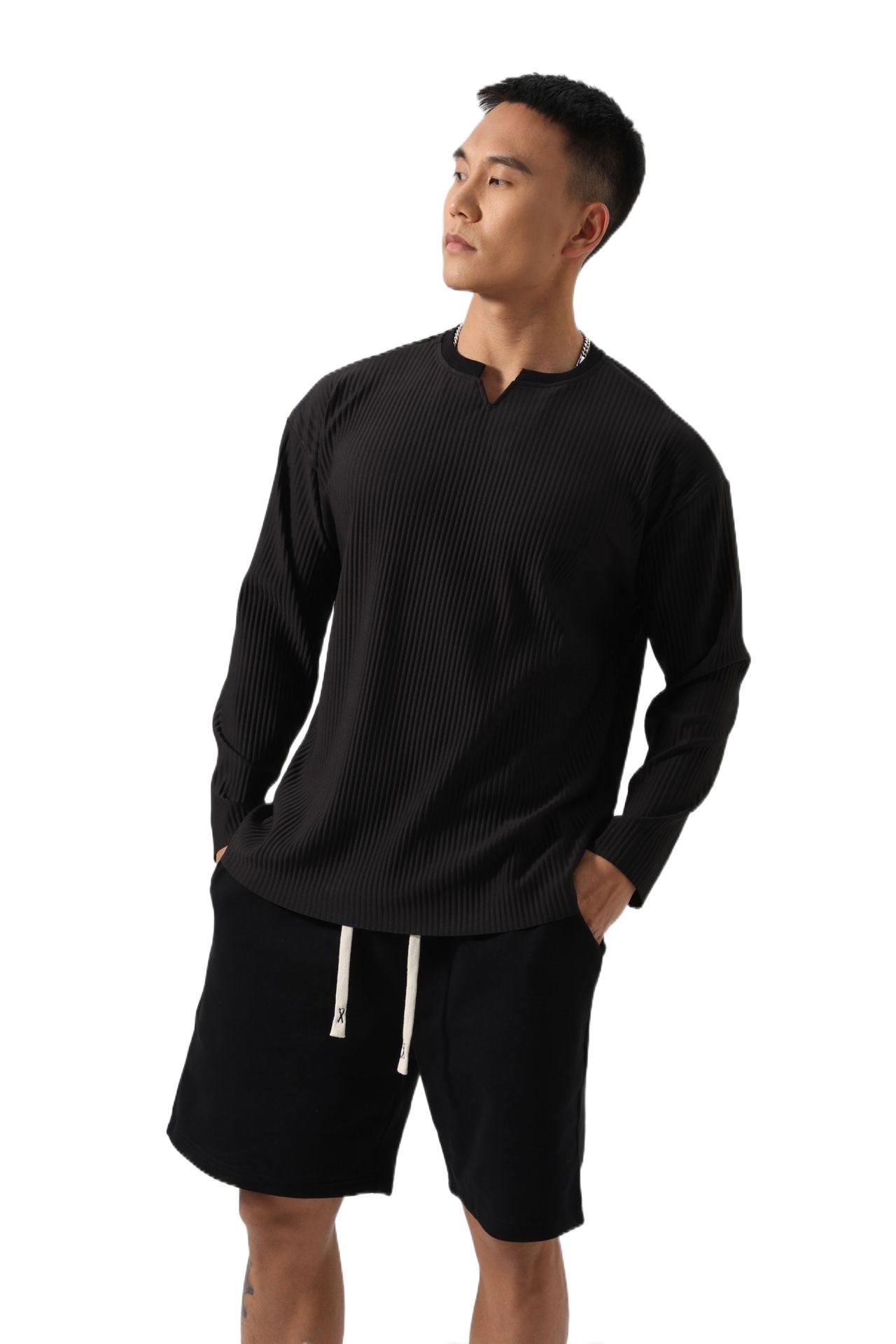 | nameOriginal | V-Neck Long-Sleeved Loose plus size Fitness Sweat Men's Quick-Dry Super Elastic Striped Quick-Dry Clothes |