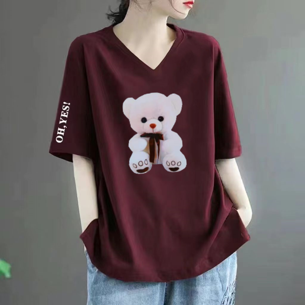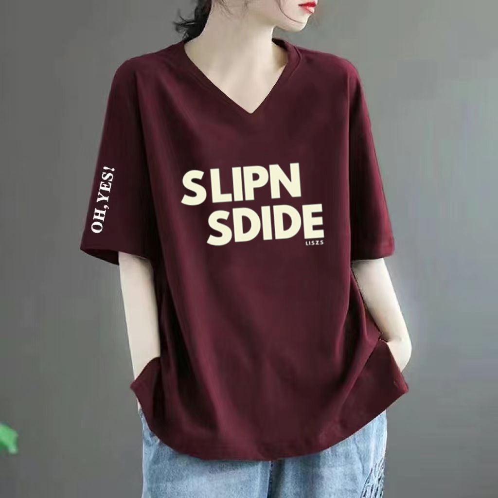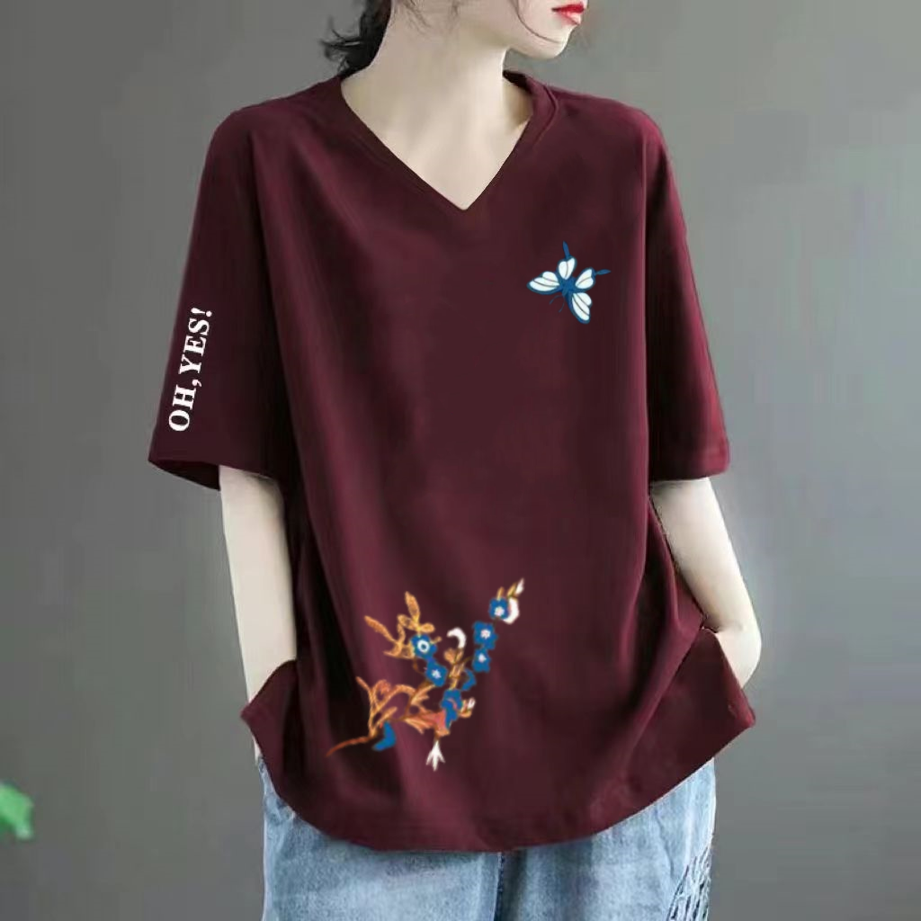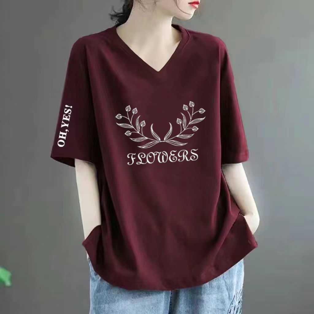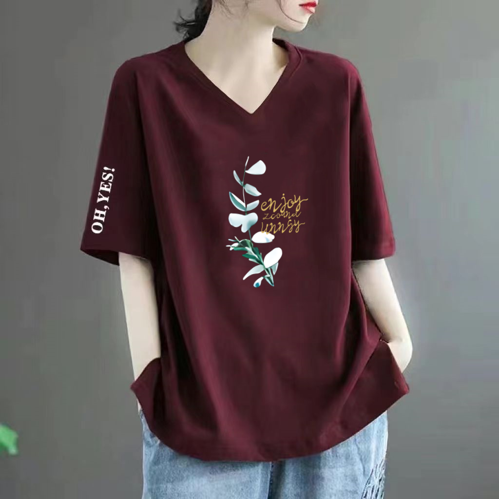 | nameOriginal | V-neck loose burgundy slim printed t-shirt short sleeves |