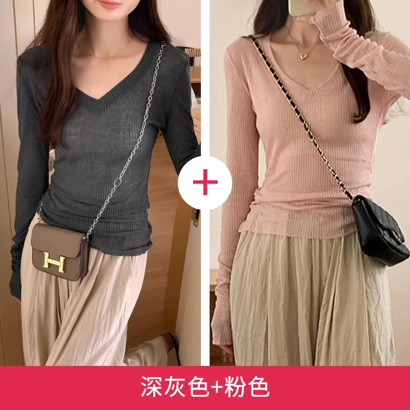| nameOriginal | V-neck micro-transparent air-conditioned bottoming top long-sleeved sweater |