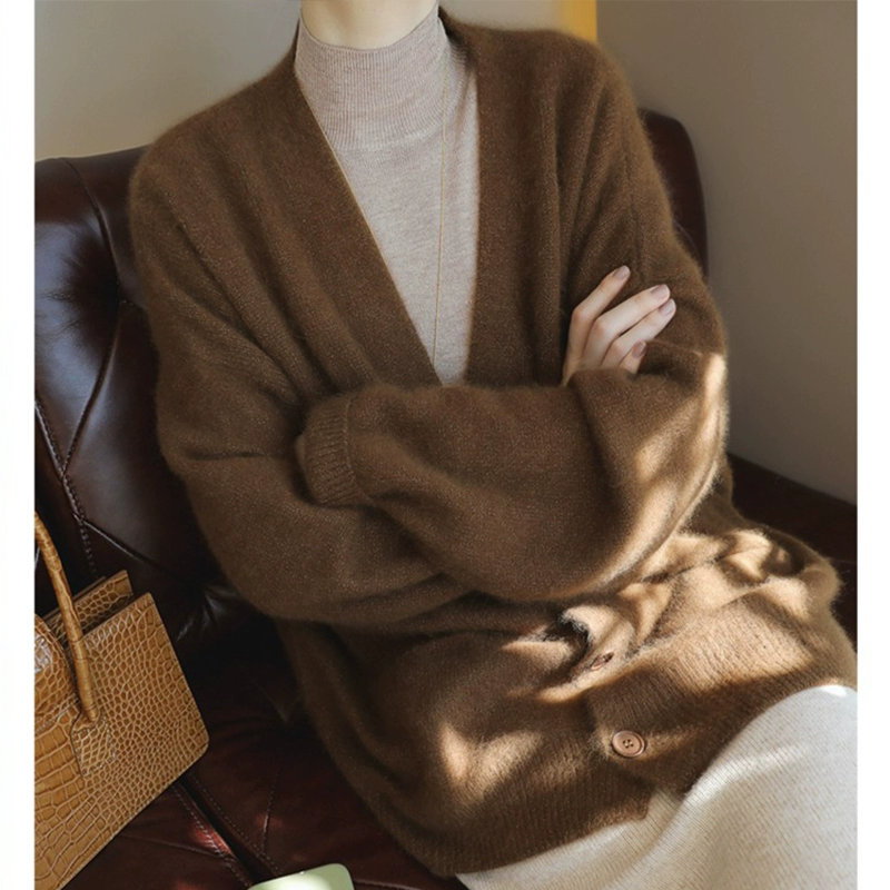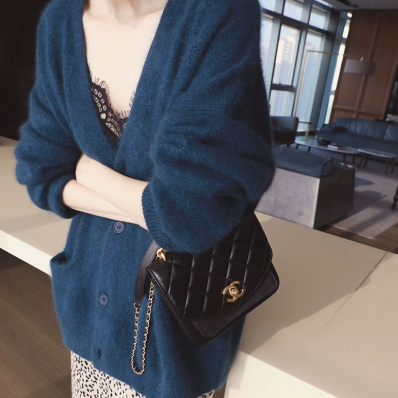 | nameOriginal | V-neck mink loose raccoon fleece navy sweater |