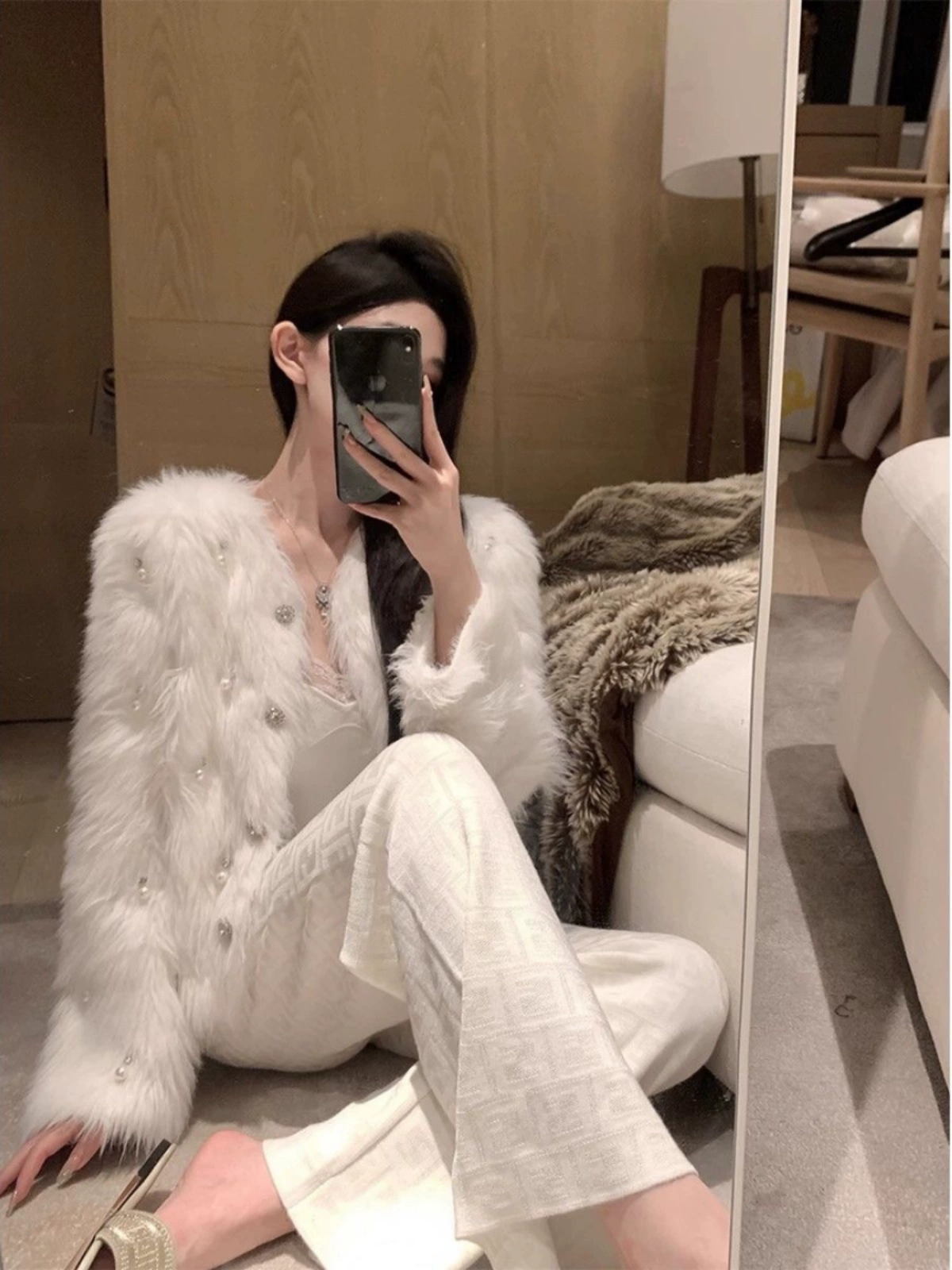 V-neck mink velvet short coat cardigan soft waxy sweater