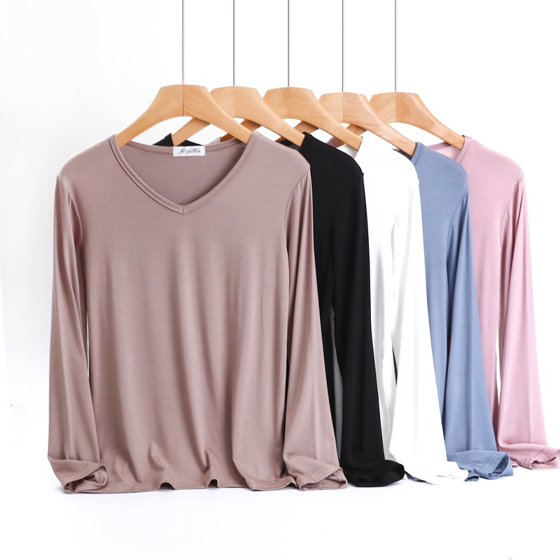 | nameOriginal | V-neck modal bottoming shirt Women's inner long-sleeved T-shirt thin low collar autumn clothes spring and autumn slim top plus size |