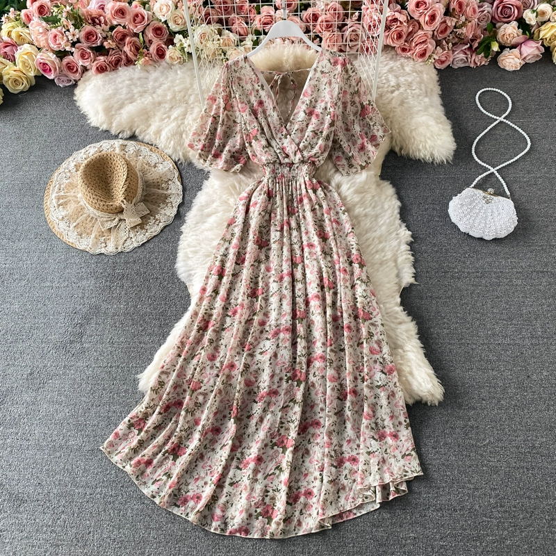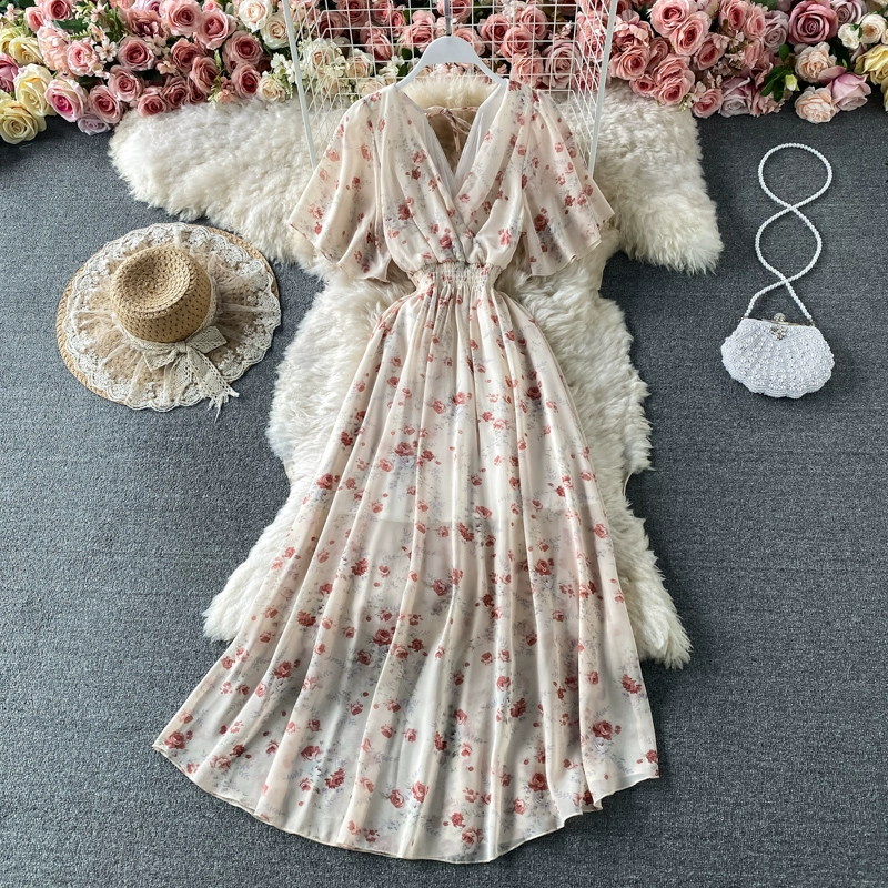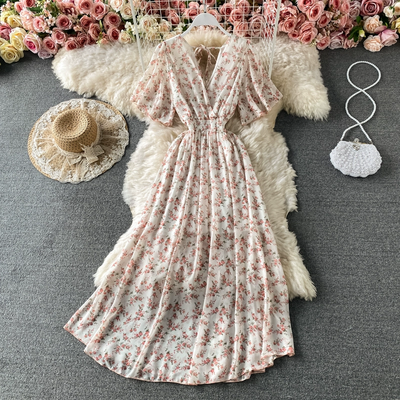 | nameOriginal | V-neck new style retro fairy chiffon dress |