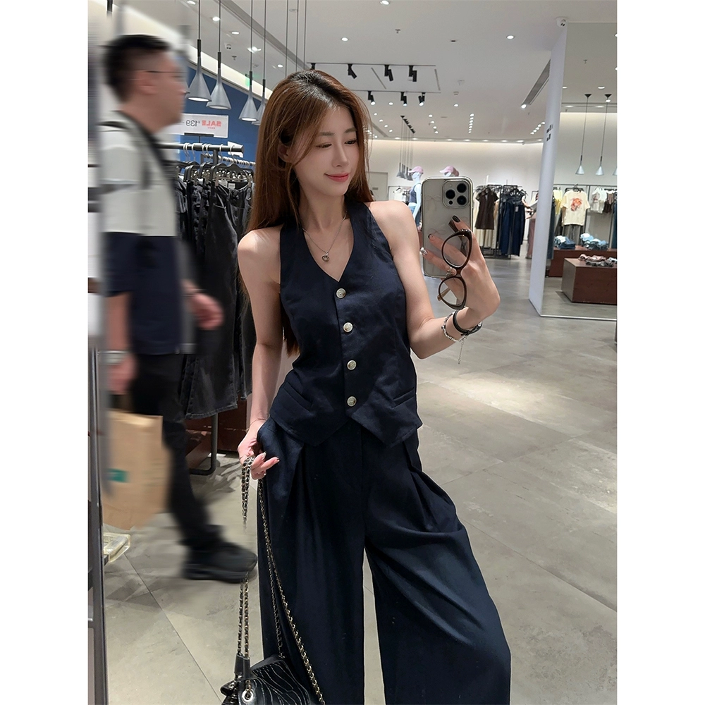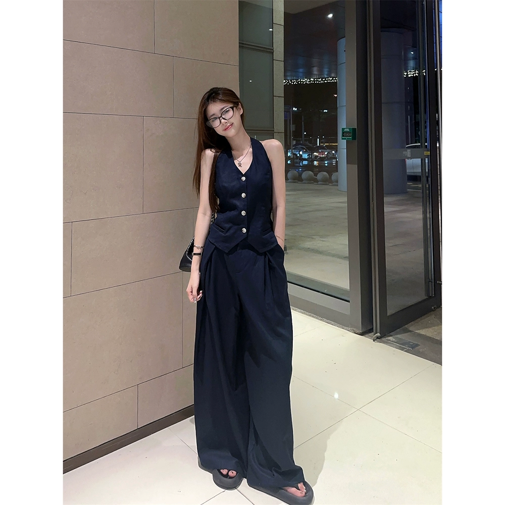V-neck open back wide leg casual trousers women’s summer halter neck