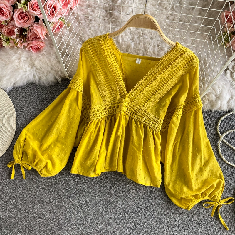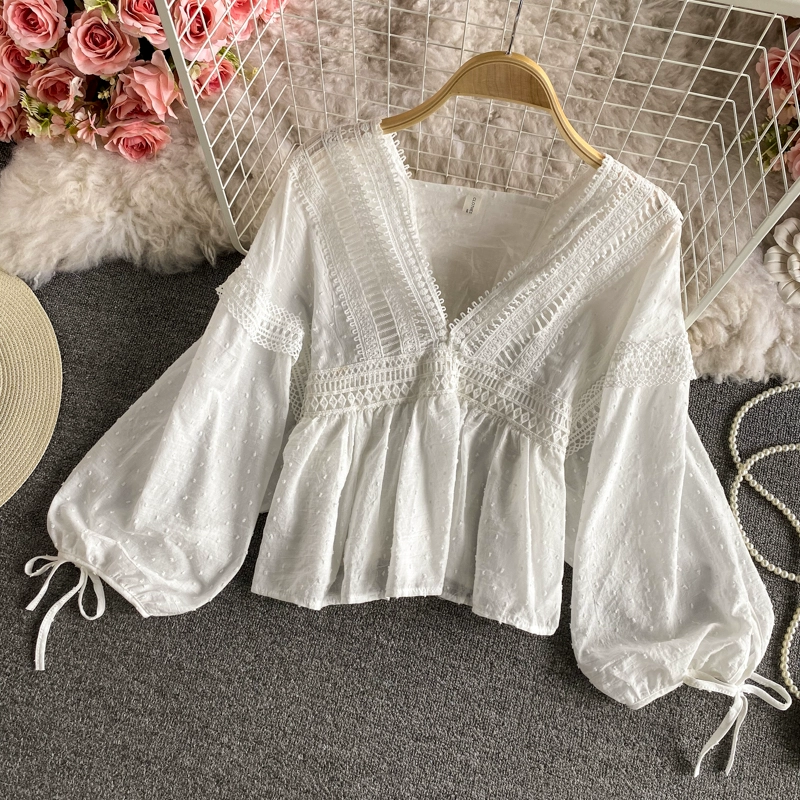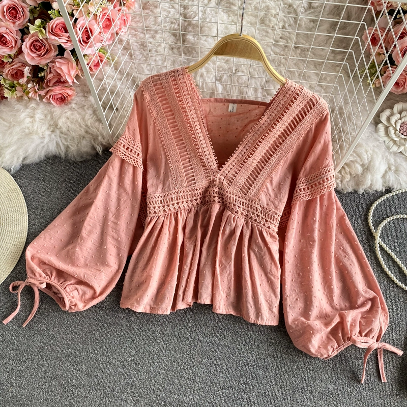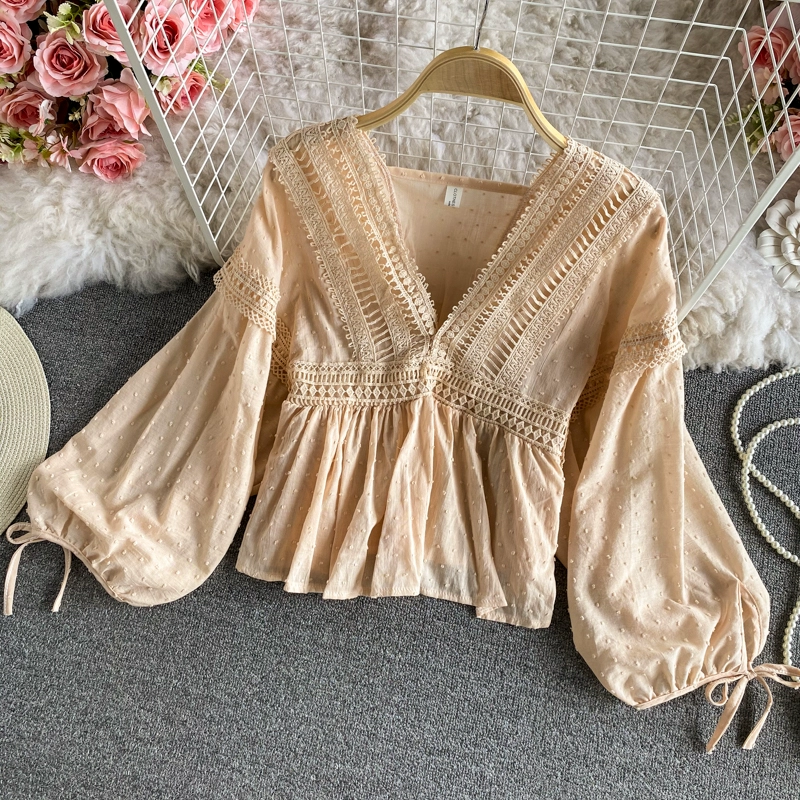 | nameOriginal | V-neck patchwork lantern sleeve babydoll loose lace |