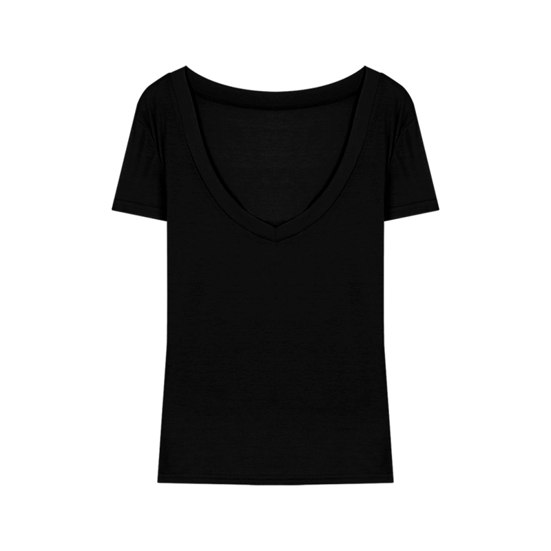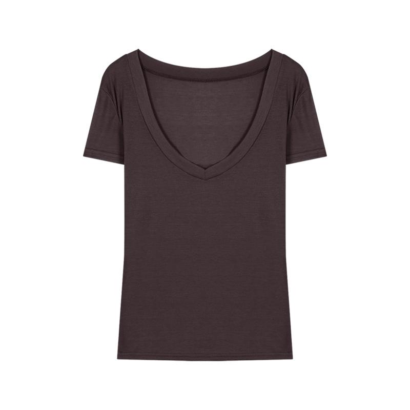 V-neck right shoulder retro slim fit bottoming top T-shirt