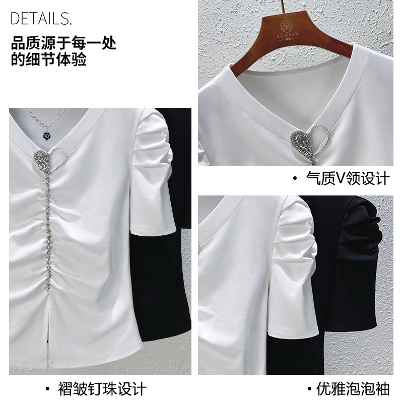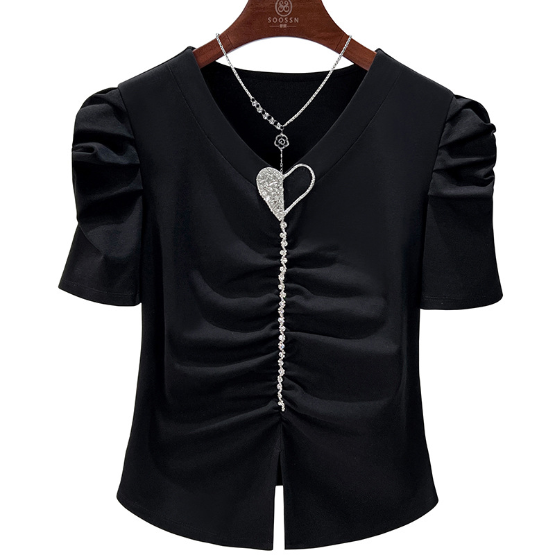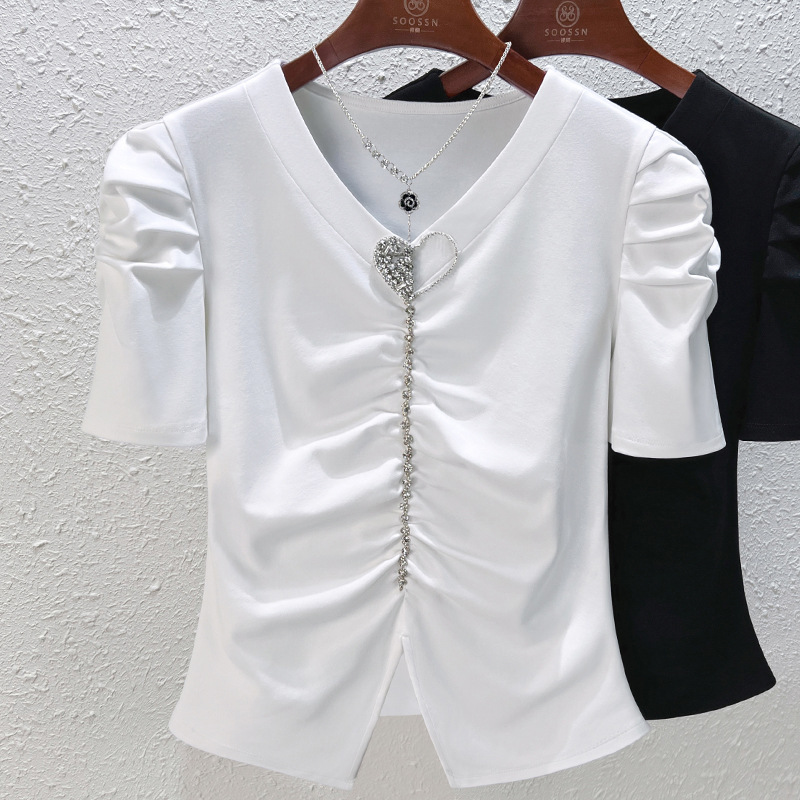 | nameOriginal | V-Neck Short Short-Sleeved T-Shirt Women's Summer Fashion Design Sense Western Style All-Match Slim-Fit Irregular Pleated Top ins |