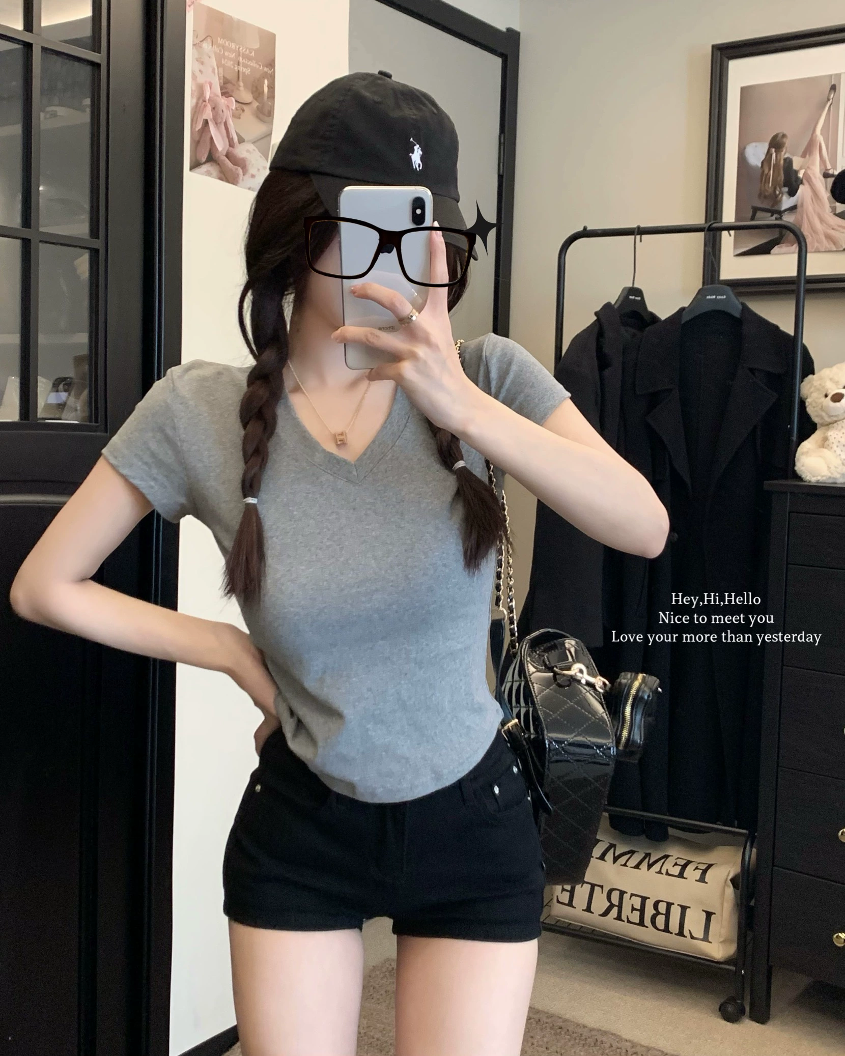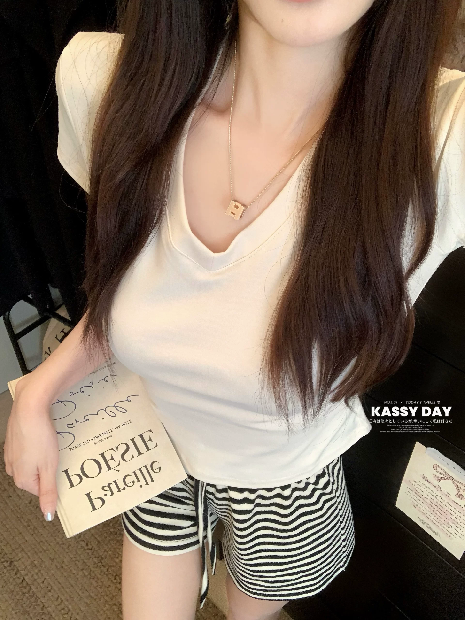 | nameOriginal | V-neck short-sleeved right shoulder summer 2024 new slim T-shirt |