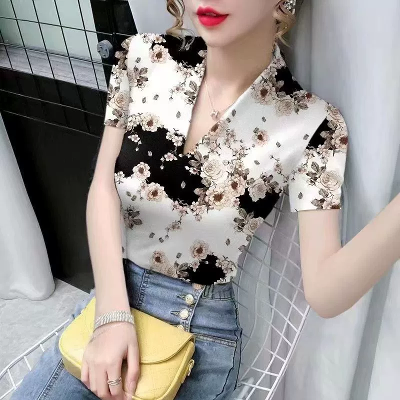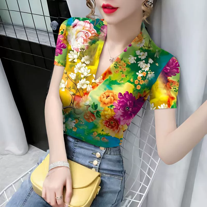 | nameOriginal | V-neck short-sleeved slim top striped top women's t-shirt |