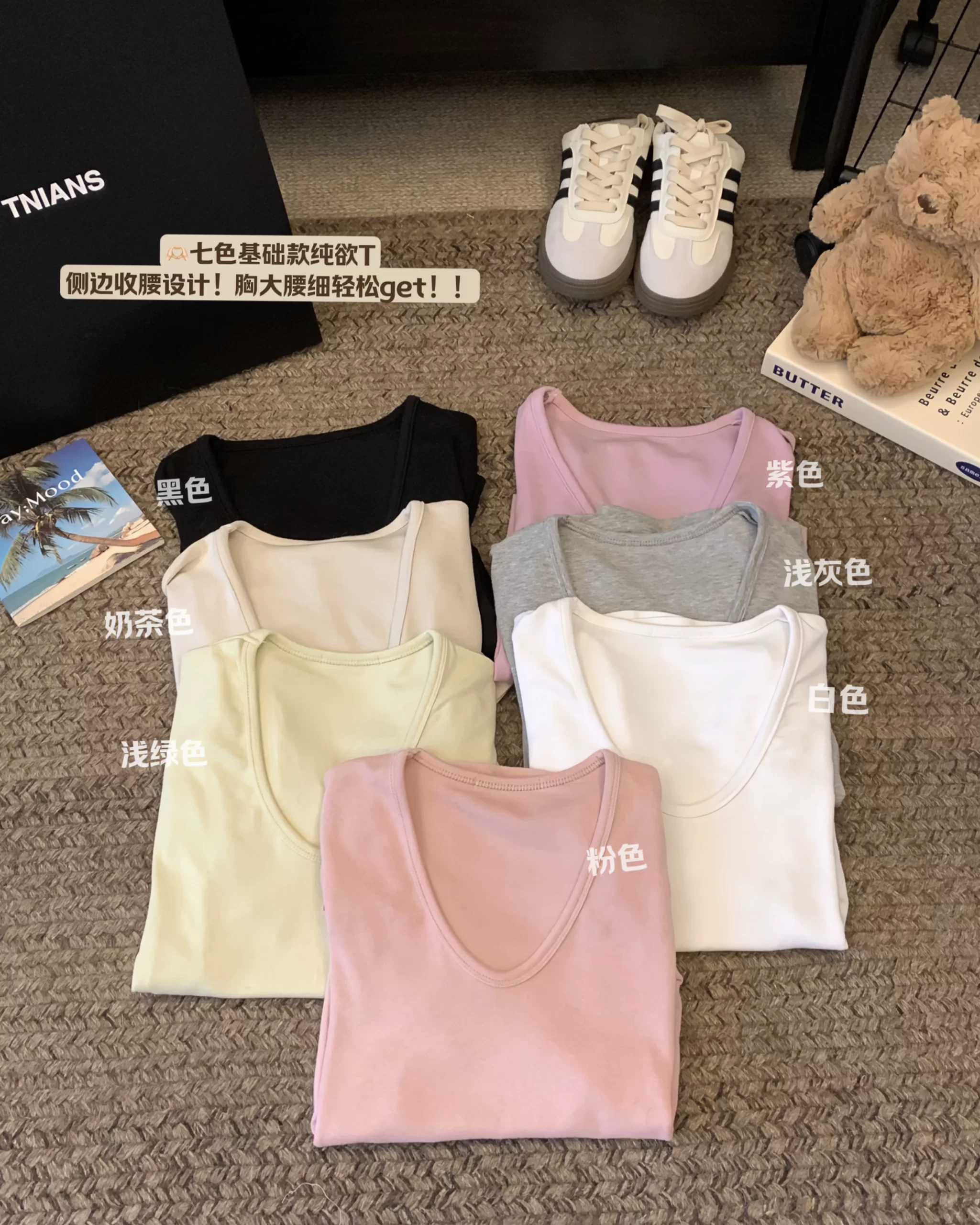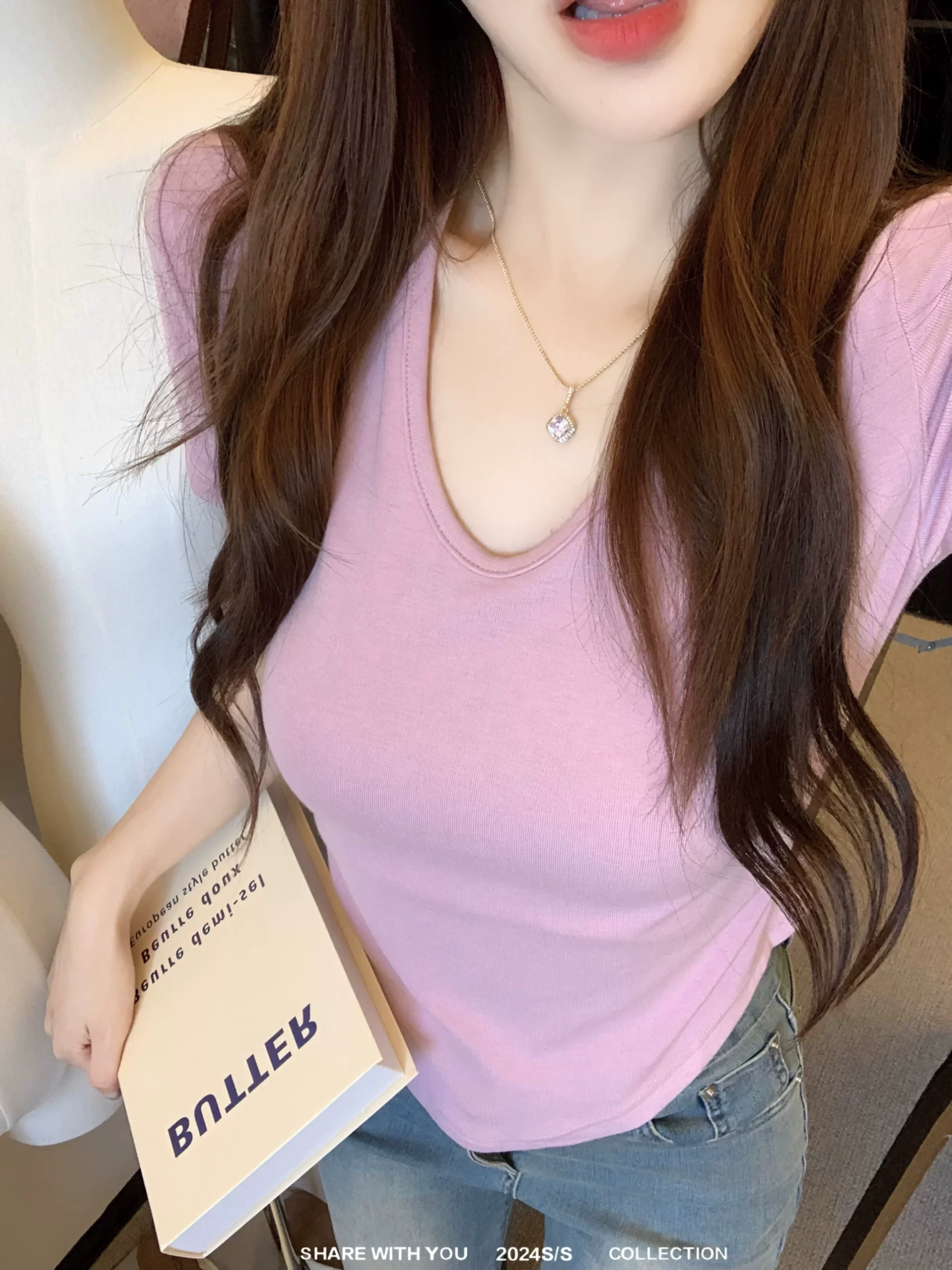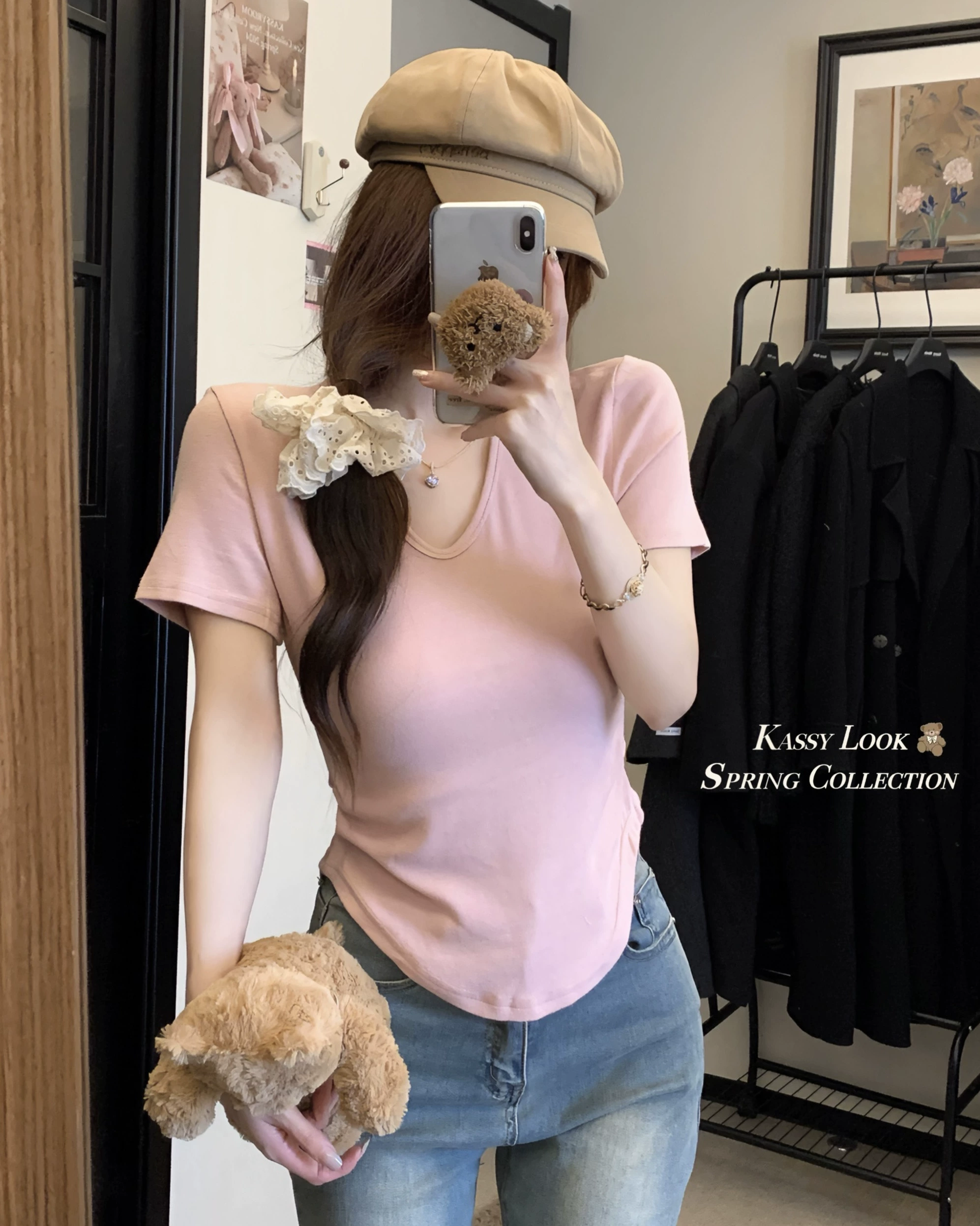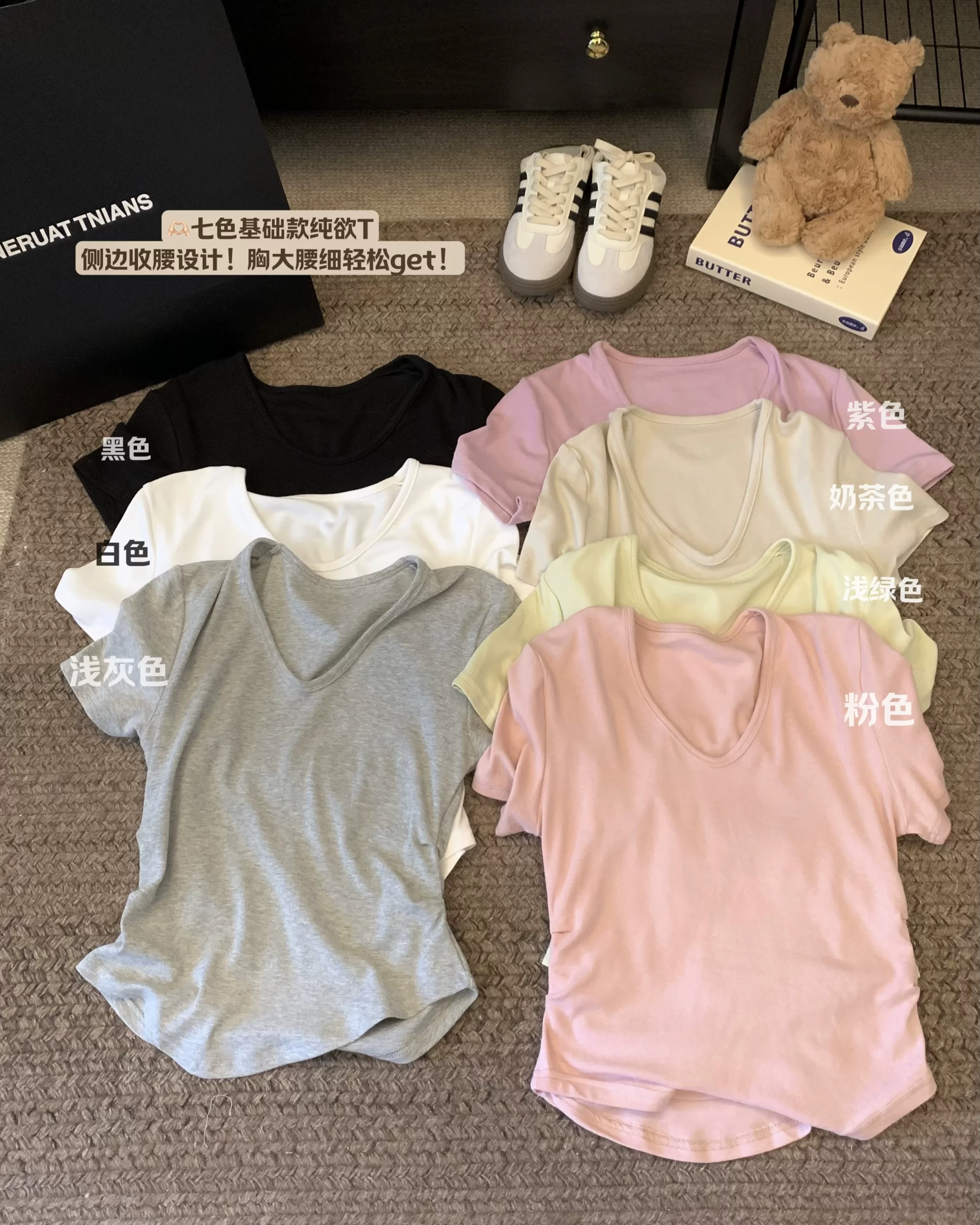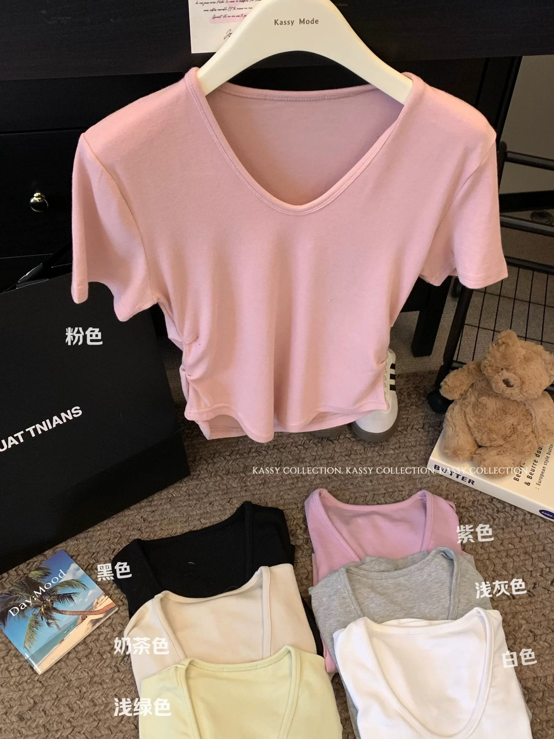 | nameOriginal | V-neck short-sleeved summer pleated slim-fitting top T-shirt |