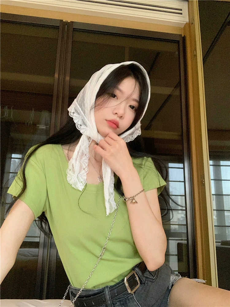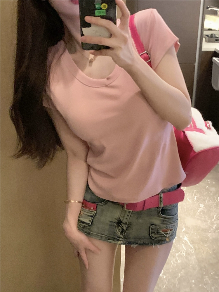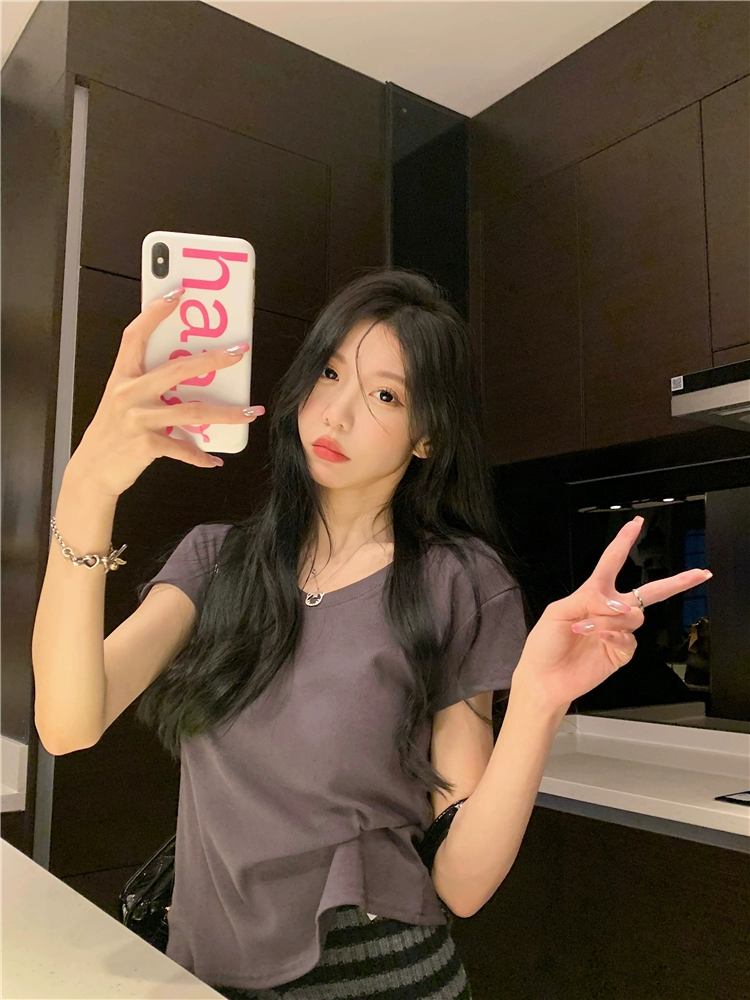 | nameOriginal | V-neck short-sleeved summer slim solid color right shoulder top T-shirt |