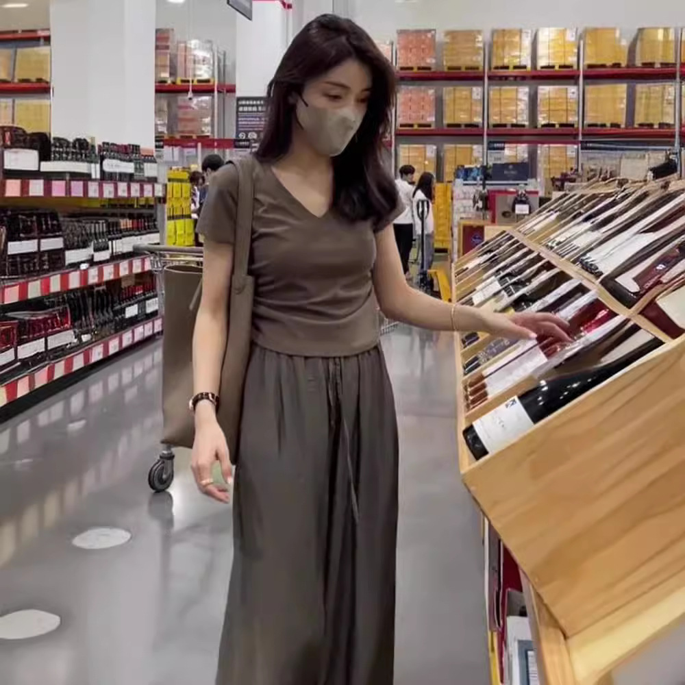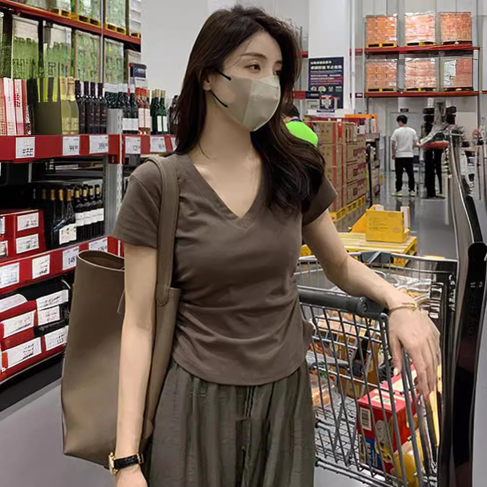| nameOriginal | V-neck Shoulder Short-sleeved T-shirt Women's Summer 2024 New Design Sense Niche Slim-fit Slimming Irregular Short Top |