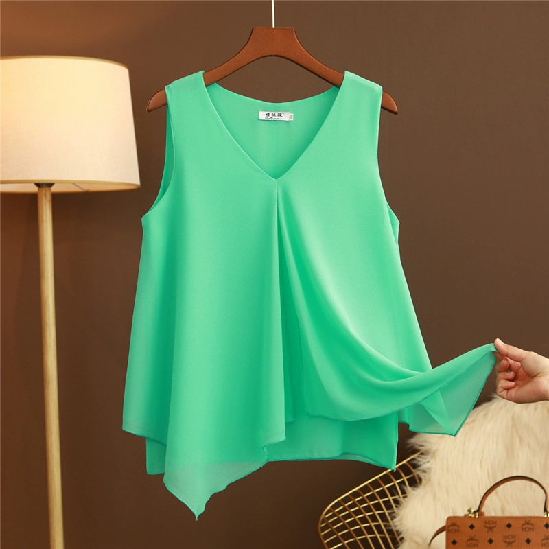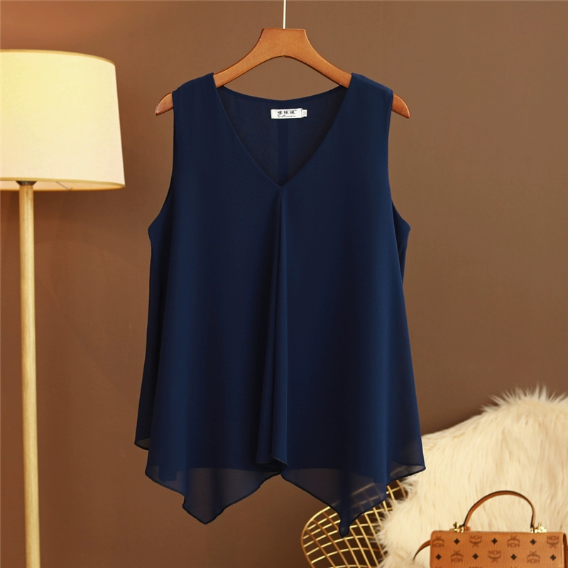 V-neck sleeveless vest, loose top with suspenders for outer wear
