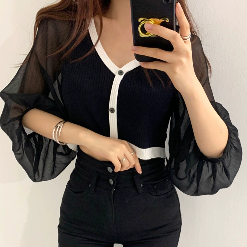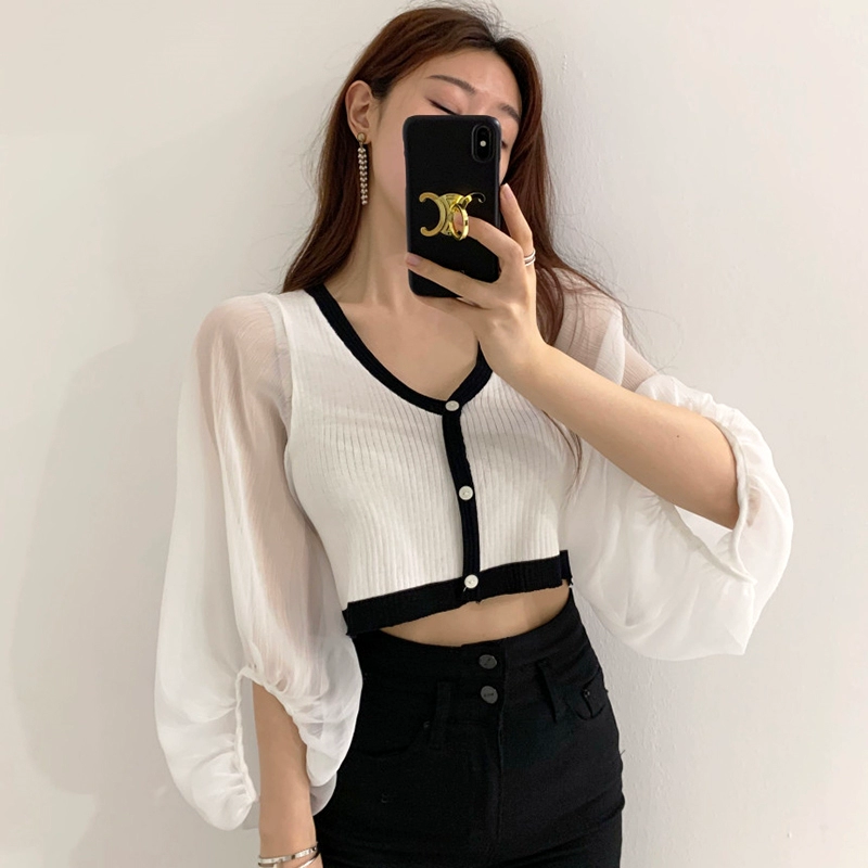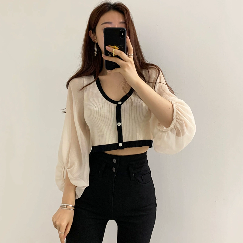 | nameOriginal | V-neck slim fit versatile chiffon top knitted cardigan |