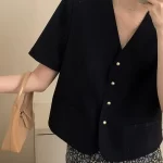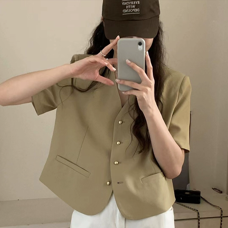 | nameOriginal | V-neck small fragrance short-sleeved cardigan blazer women's 2024 summer thin Hong Kong style niche chic outer top |