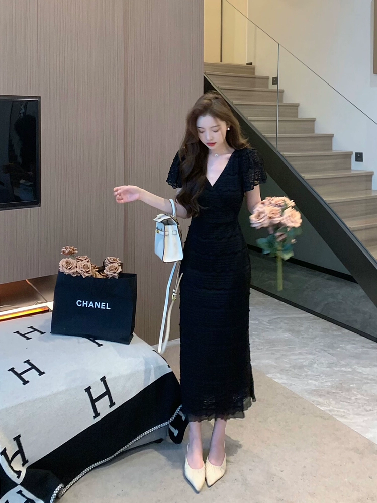 | nameOriginal | V-neck strappy dress summer French style lace |
