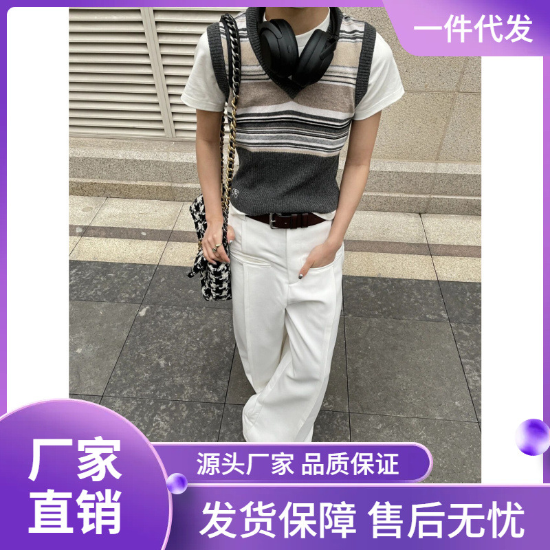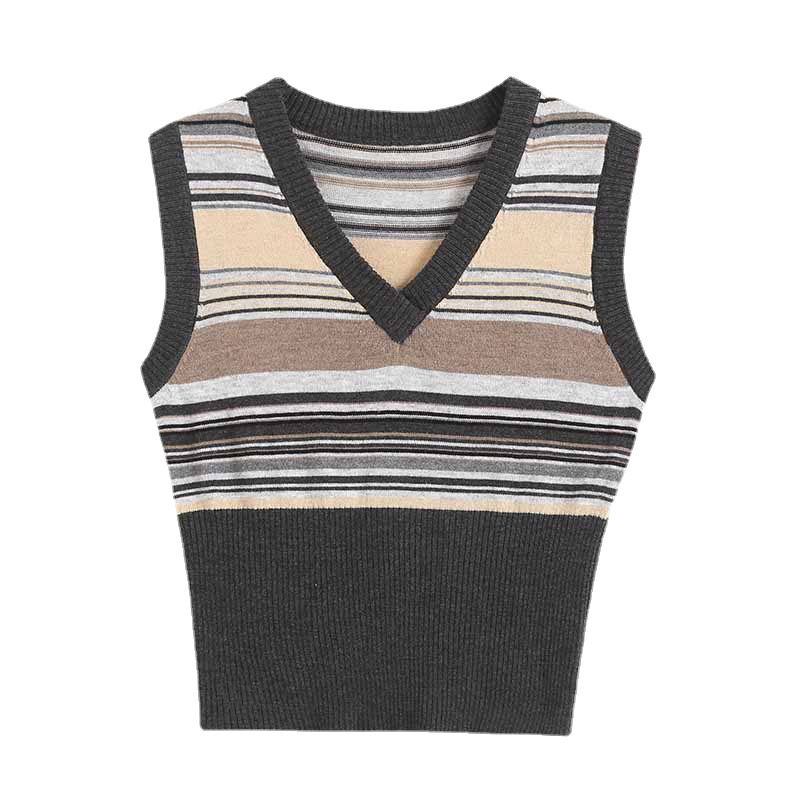 | nameOriginal | V-Neck Striped Knitted Vest Design Wind Right Angle Shoulder Slim Thin Wool Vest Short Vest |